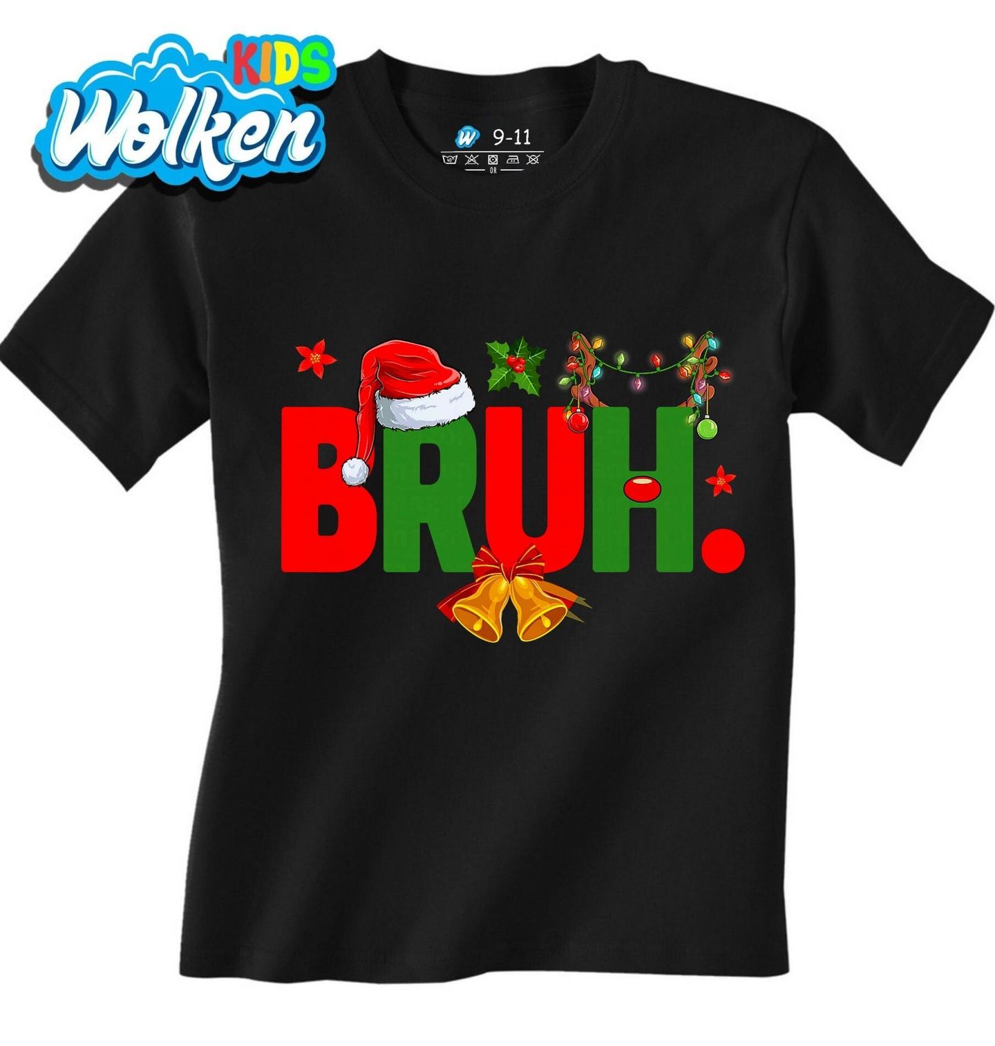 Dětské tričko Vánoční Bruh. Vánoční meme motiv pro všechny, kdo mají styl! „Bruh“ ve svátečním kabátě kombinuje sarkasmus, humor a kouzlo Vánoc v jednom nápisu. Santa čepice, světýlka, jmelí i zvoneček – tohle není klasický vánoční dárek. Perfektní pro ty co milují meme a Vánoce.