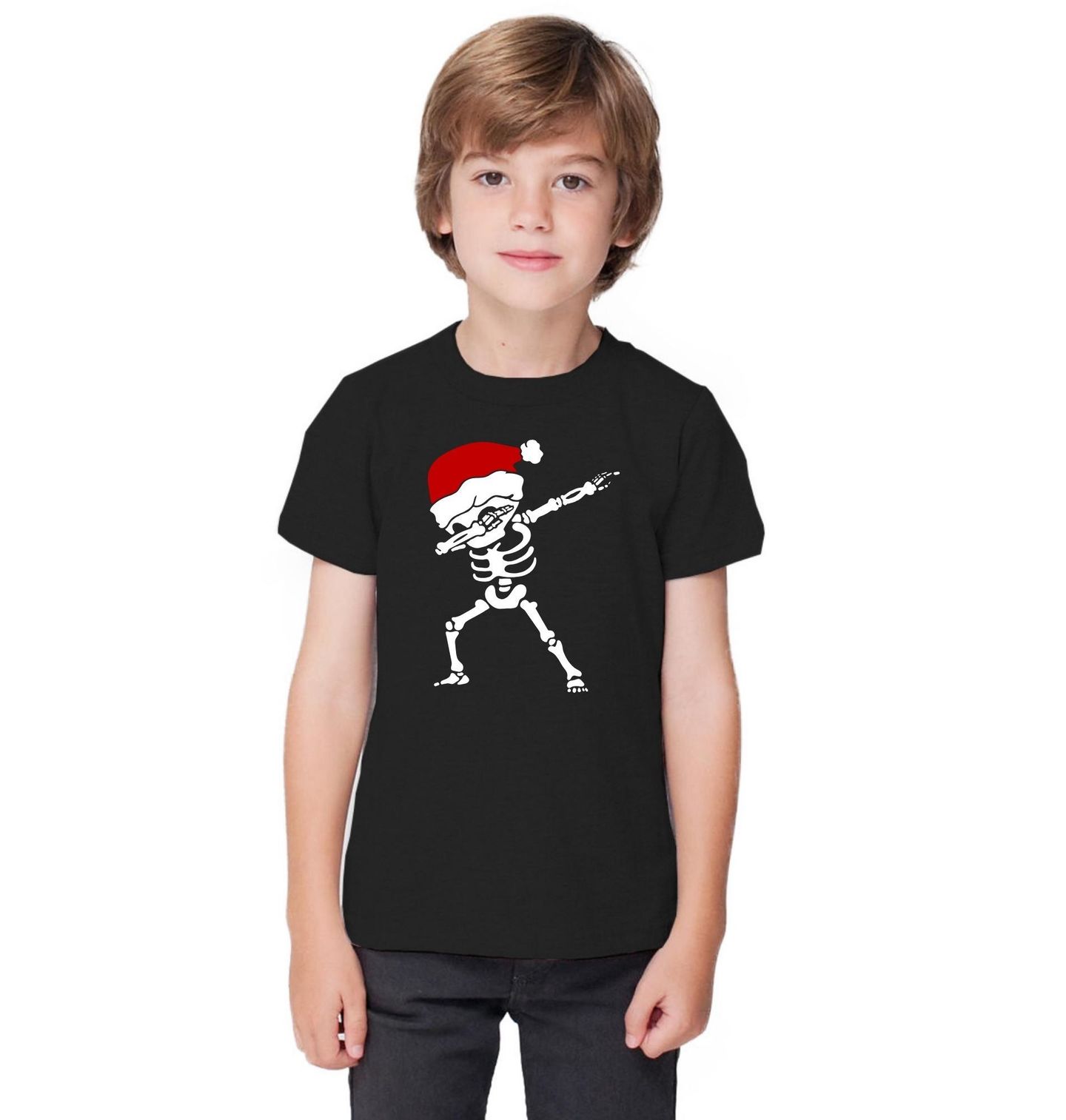 Dětské tričko Vánoční Dabující Kostlivec. Oživte svátky pořádnou dávkou humoru – motiv Vánoce, dabující kostlivec je ideální pro všechny, kdo se nebojí netradiční vánoční nálady. Kostlivec v čepici Santu dává legendární dab, který pobaví rodinu, přátele i kolegy na vánočních večírcích.