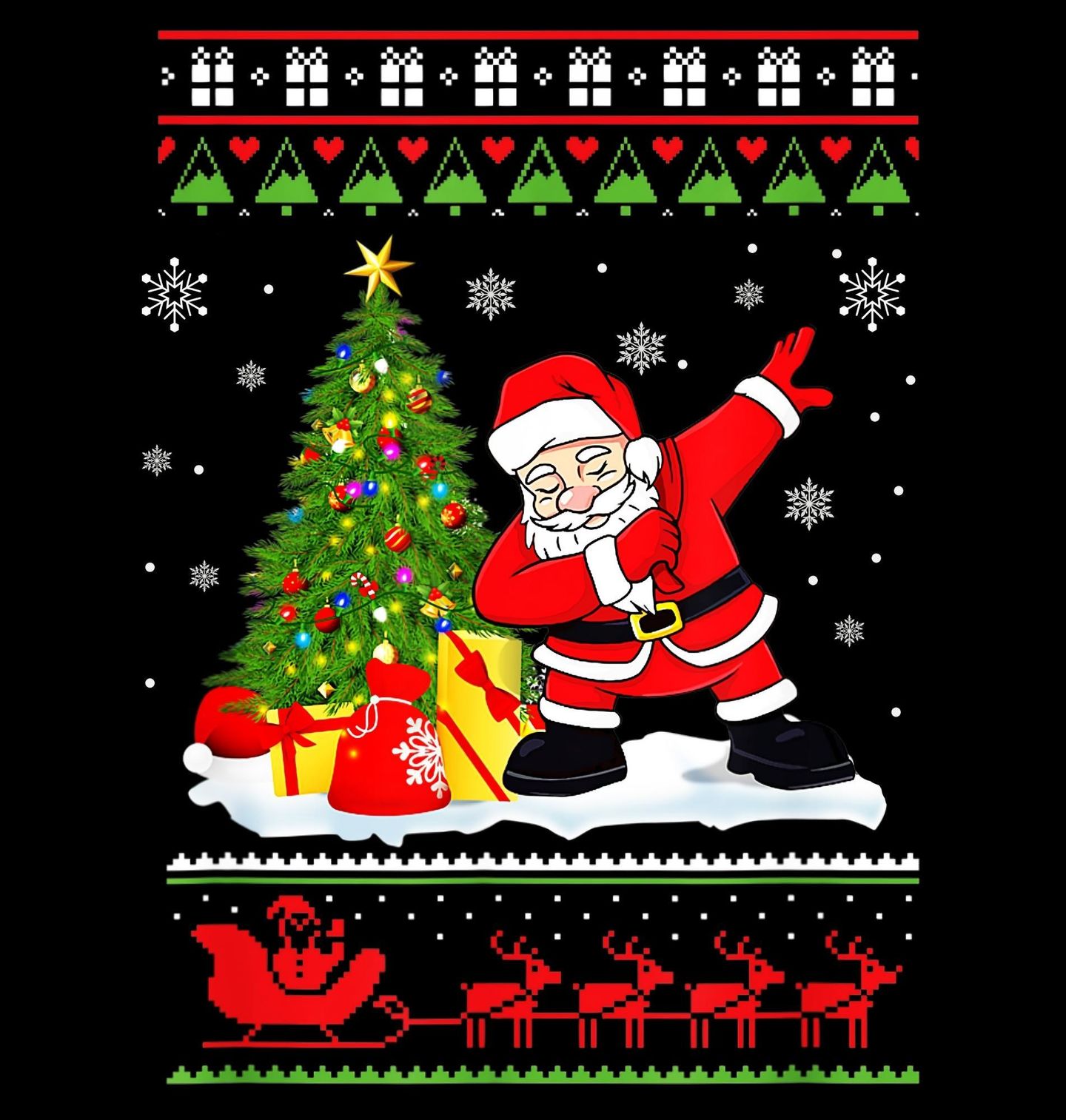 Dámské tričko Vánoční Dabující Santa u Stromečku. V hlavní roli jsou Vánoce, stylový santa, který dává pořádný dab, vánoční stromek, dárky a pořádná dávka svátečního kýče. Tohle je ten pravý ugly sweater v digitálním provedení – barevný, bláznivý a totálně sváteční. Díky kombinaci santa, Vánoce a trendy pózy budeš středem pozornosti na každé párty.