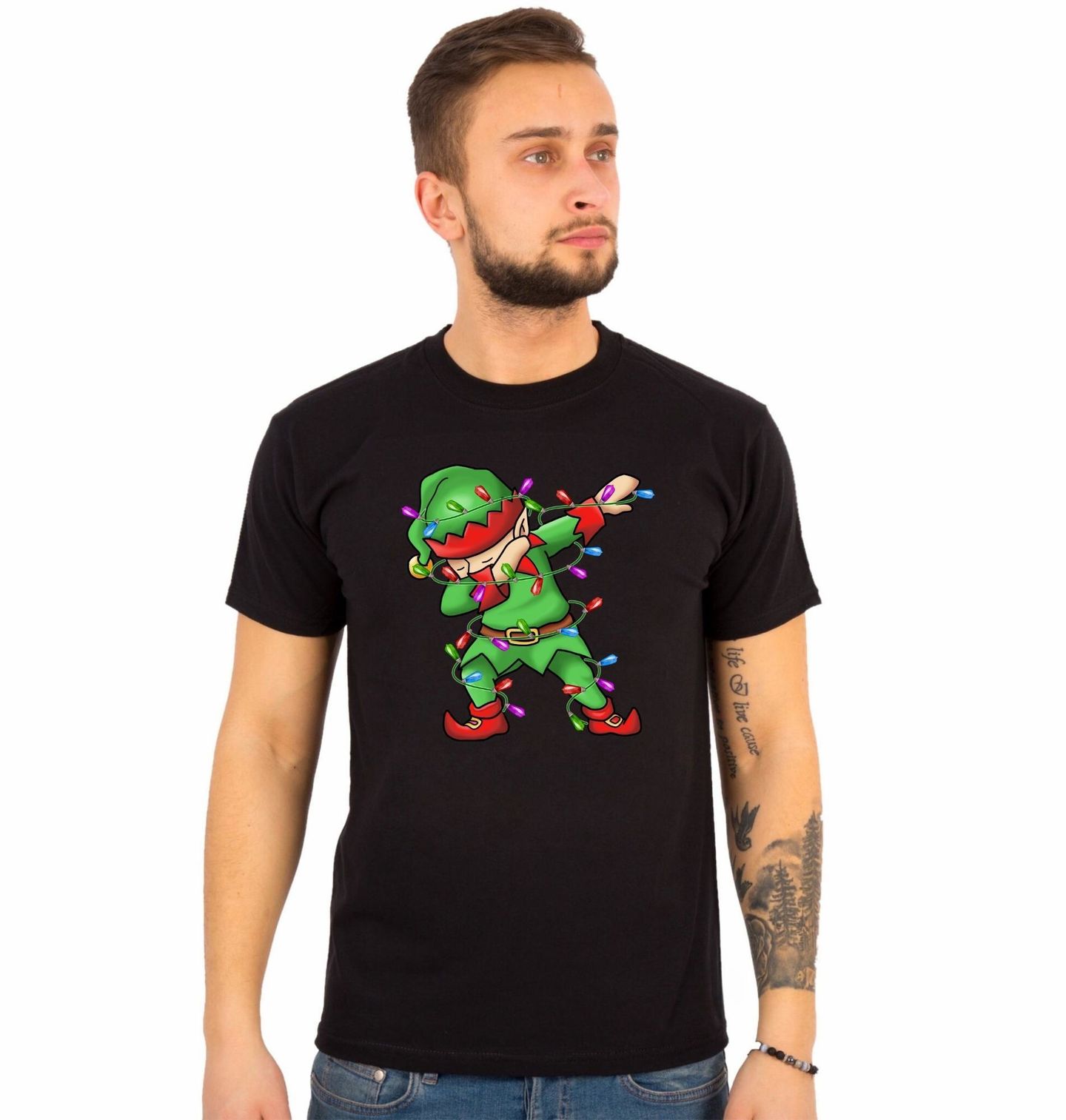 Pánské tričko Vánoční Dabující Skřítek. Připravte se na pořádnou porci vánoční zábavy! Tento originální motiv „dabujícího skřítka“ je ideální pro všechny milovníky svátků, kteří mají smysl pro humor. Vánoce v tomto podání nejsou jen o cukroví a koledách – ale i o stylu, světýlkách a dabovacím tanečku.