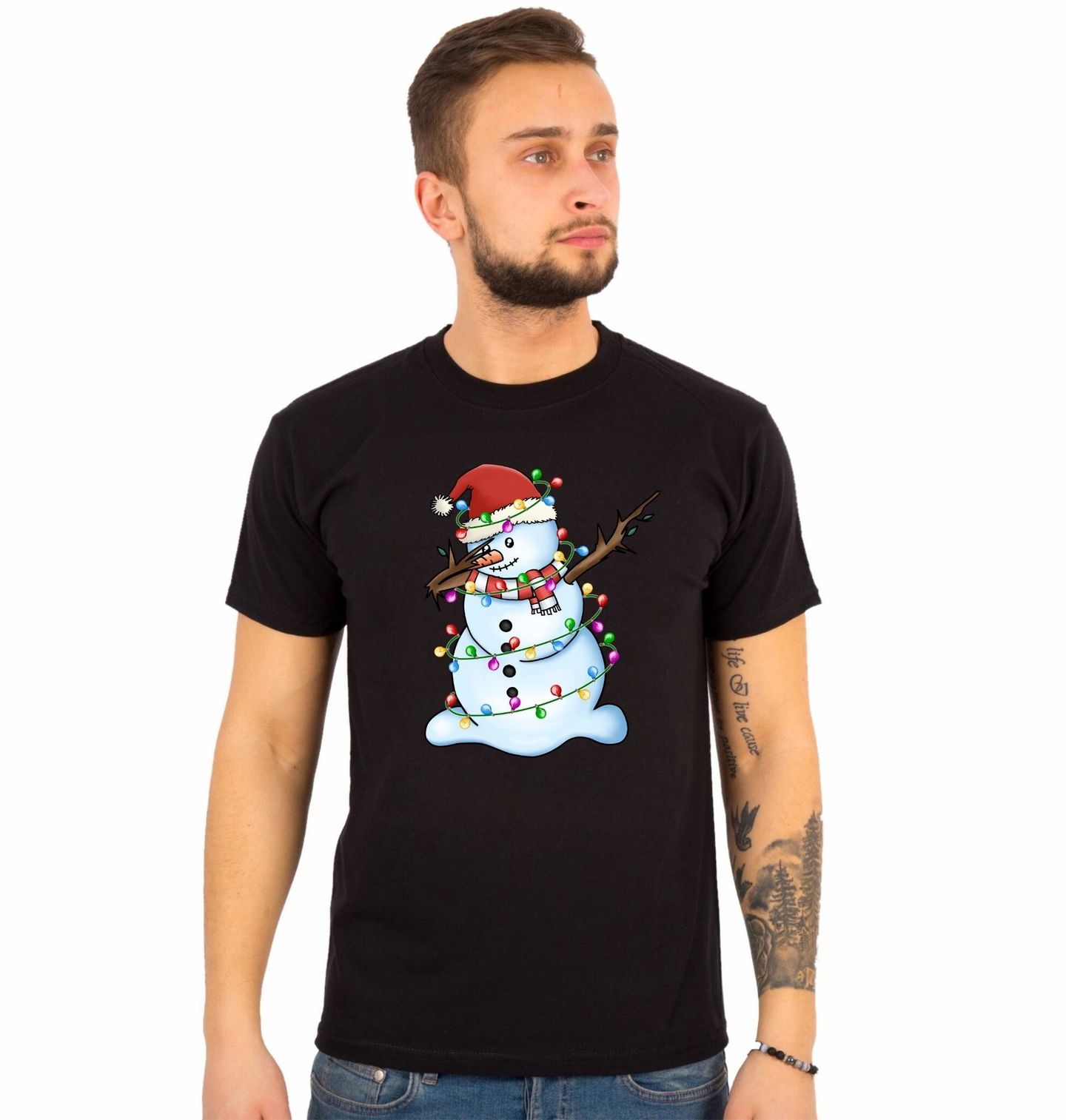 Pánské tričko Vánoční Dabující Sněhulák. Tento cool sněhulák ví, co frčí! S vánoční čepicí, světýlky a ikonickým pohybem „dab“ rozjíždí zimní párty jako profík. Ideální design pro všechny, kdo milují Vánoce s humorem, styl a sváteční originalitu. Sněhulák, který nejen mrazí, ale hlavně baví!