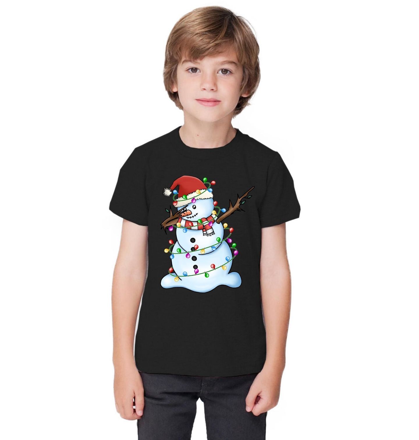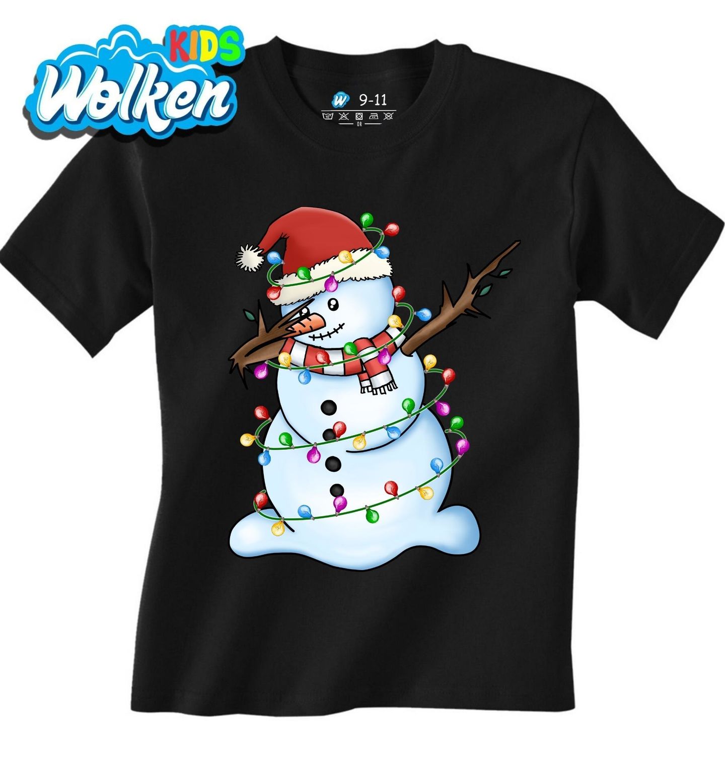 Dětské tričko Vánoční Dabující Sněhulák. Tento cool sněhulák ví, co frčí! S vánoční čepicí, světýlky a ikonickým pohybem „dab“ rozjíždí zimní párty jako profík. Ideální design pro všechny, kdo milují Vánoce s humorem, styl a sváteční originalitu. Sněhulák, který nejen mrazí, ale hlavně baví!