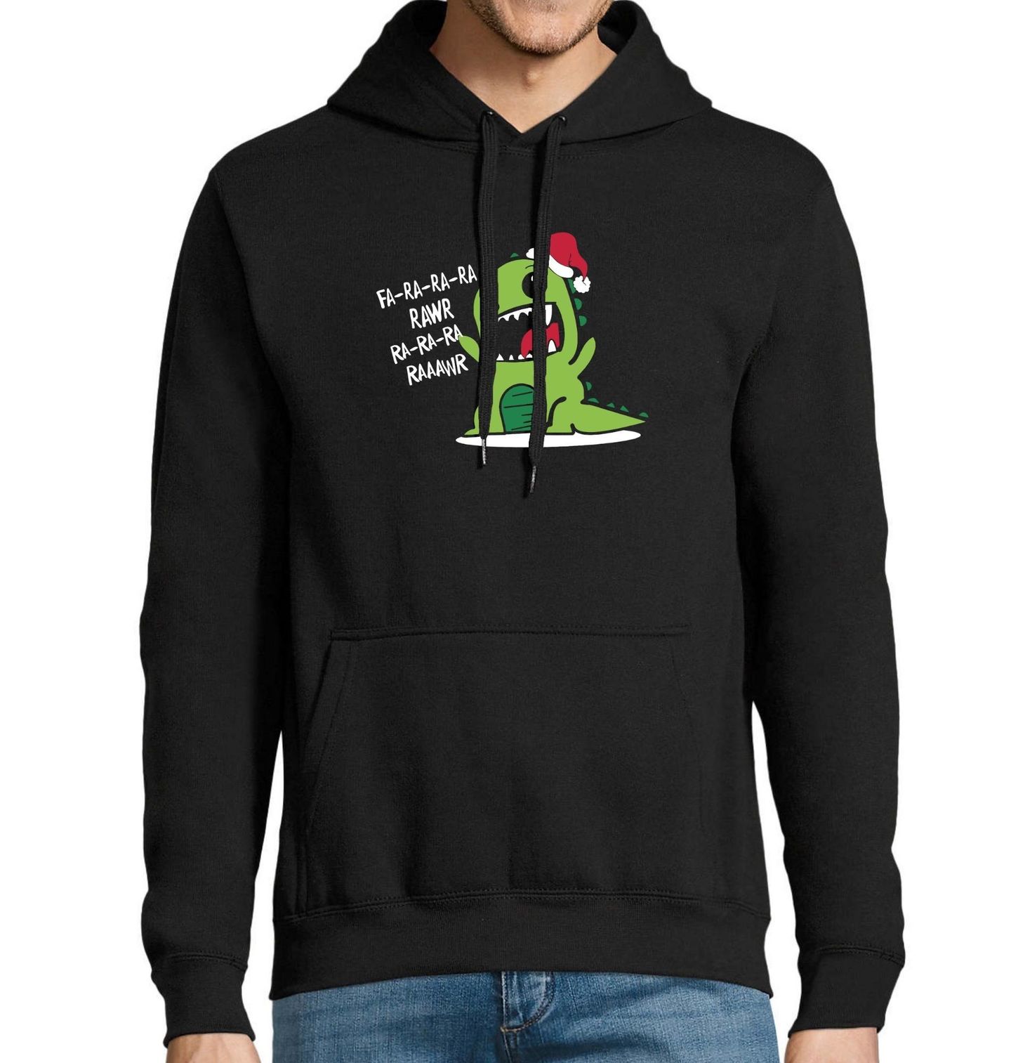 Pánská mikina Vánoční Dinosaurus Rawr. Vánoce jsou tady a s nimi i nejroztomilejší dinosaurus, který místo klasického zpívání koled raději řve svoje RAWR! Tento vtipný motiv je parodií na slavnou anglickou koledu Deck the Halls, kde se zpívá „fa-la-la-la-la“. Dino si ji přetvořil po svém a vzniklo „fa-ra-ra-ra rawr ra-ra-ra-ra raaawr“.