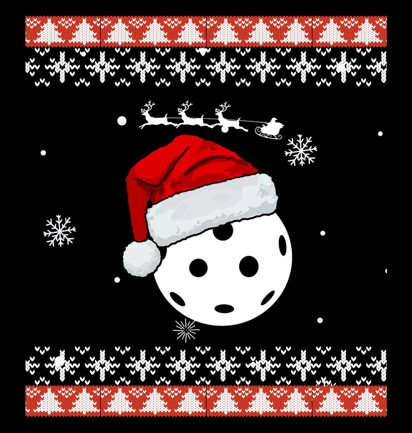Pánské tričko Vánoční Florbalový Míček. Spojte sportovní vášeň s kouzlem svátků! Tento originální motiv ukazuje florbalový míček s čepicí Santa Clause, zasazený do vzoru připomínajícího ugly sweater styl. Ideální pro každého hráče i fanouška florbalu, který chce oslavit Vánoce netradičně a s humorem.
