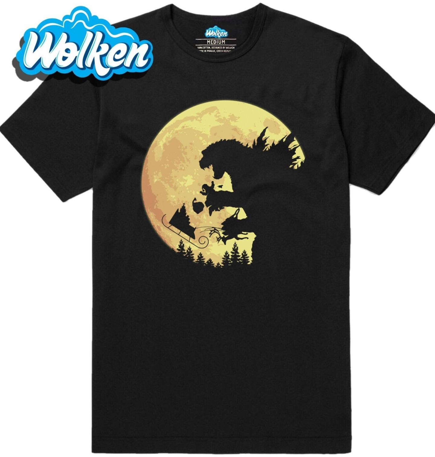 Pánské tričko Vánoční Godzilla Útočí. Tento motiv zachycuje legendární Godzilly – obří filmové monstrum, jak se při úplňku střetává se Santovými sáněmi. Ideální pro fanoušky monster filmů, kteří chtějí Vánoce oslavit trochu jinak – s pořádnou dávkou adrenalinu a originality.