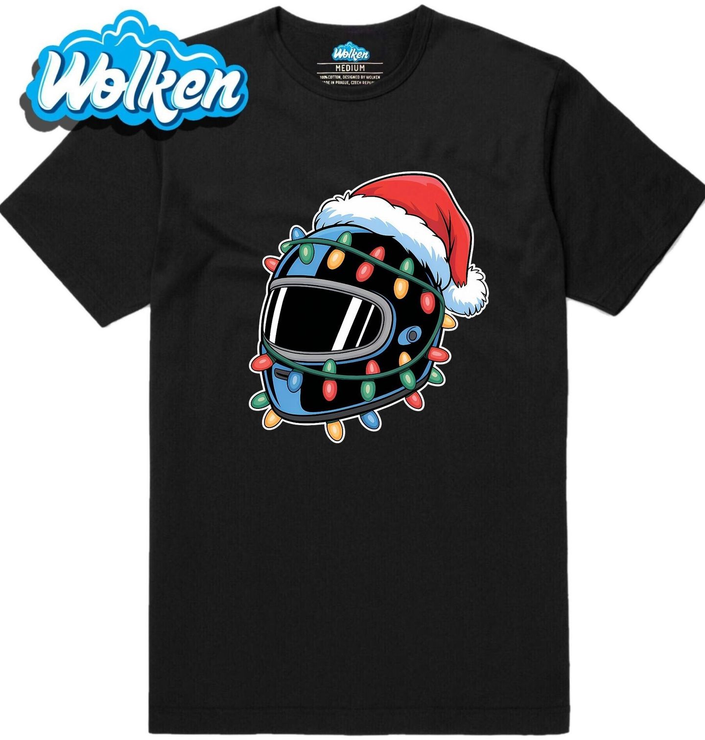 Pánské tričko Vánoční Helma Motorkáře. Připravte se na sváteční jízdu! Tento originální motiv spojuje radost z rychlosti a kouzlo svátků – helma ozdobená barevnými světýlky a čepicí Santa Clause potěší každého fanouška jedné stopy. Vánoce, helma, motorka – tři věci, které patří k sobě, když chcete propojit sváteční atmosféru s láskou k cestám.