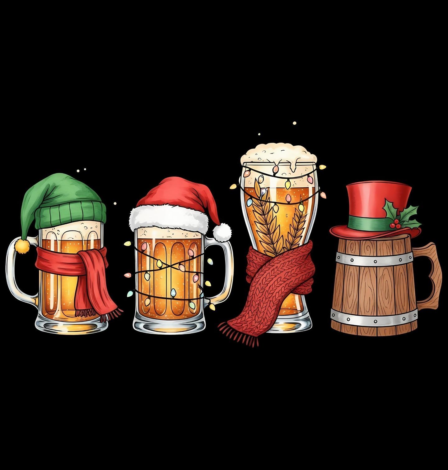 Pánské tričko Vánoční Hospodské Pivo. Pivní sklenice i soudky tu slaví stylově – s čepicemi, šálami, světýlky a pěnou až po okraj. Ideální motiv pro všechny milovníky piva, kteří chtějí ukázat, že Vánoce si umí užít po svém – se sklenicí v ruce a úsměvem na tváři. Skvělé jako dárek pro každého pivaře.
