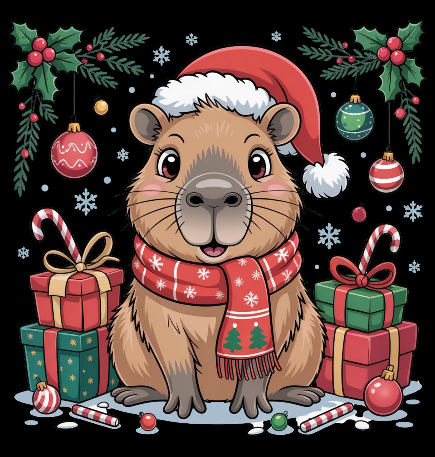 Pánské tričko Vánoční Kapybara mezi Dárky. Kapybara – nejroztomilejší hlodavec, který ti zpříjemní Vánoce! Tato kapybara s čepicí, šálou, dárky a cukrovím je dokonalým symbolem pohodových Vánoc. Když se spojí největší hlodavec světa a kouzelná zimní atmosféra, vznikne design, který si zamiluješ!