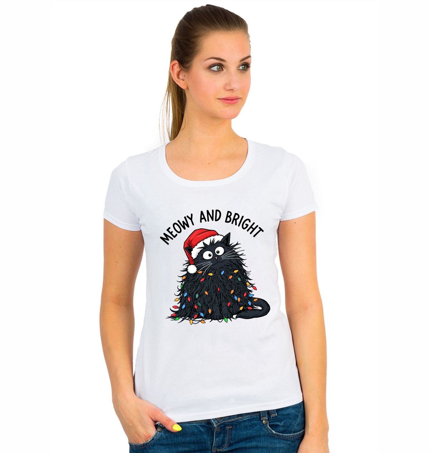 Dámské tričko Vánoční Kočka Meowy and Bright