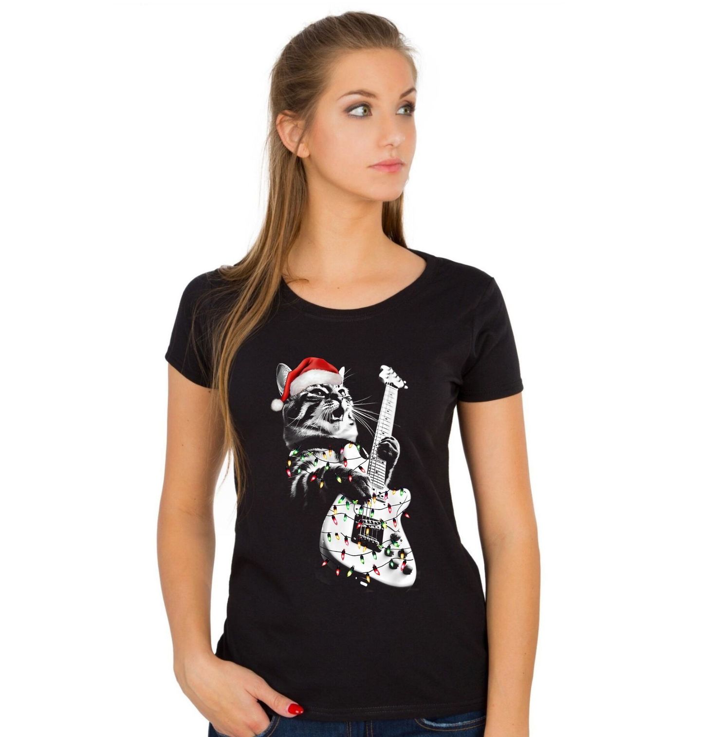 Dámské tričko Vánoční Kočka s Kytarou