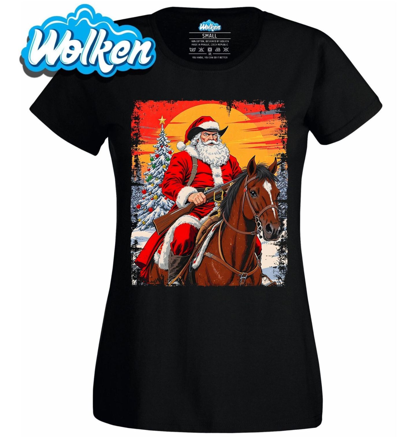 Dámské tričko Vánoční Kovboj Santa na Koni
