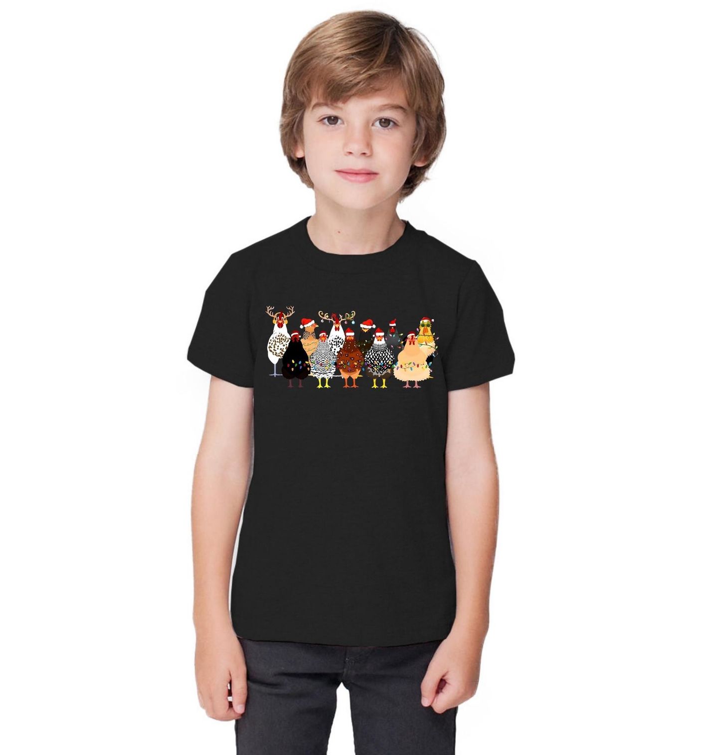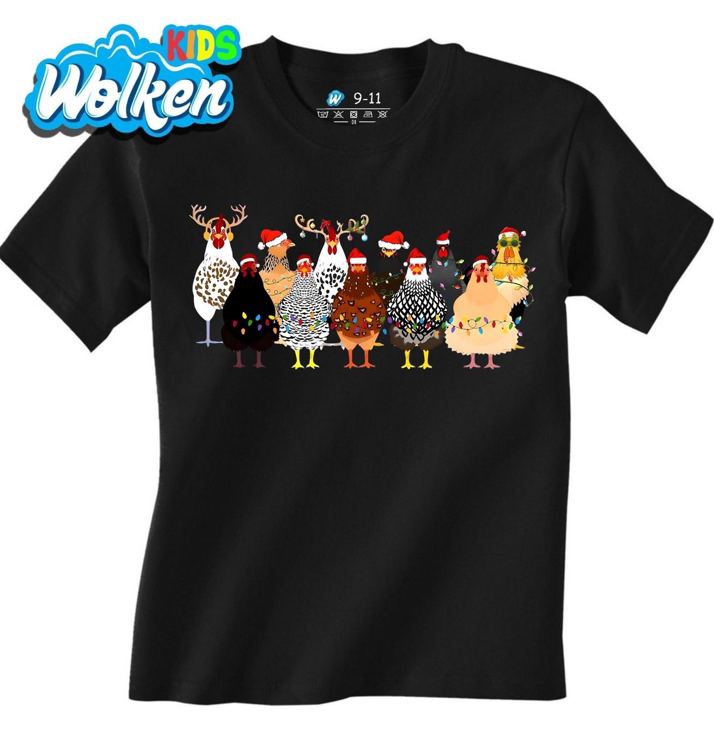 Dětské tričko Vánoční Kurník Slepic. Tohle nejsou obyčejné slepice – tohle je parádně vyfešákovaná slepičí parta připravená na Vánoce! Slepice v čepicích, vánočních světýlkách a se sobími parohy – ano, přesně takhle vypadá drůbeží oslava svátků!