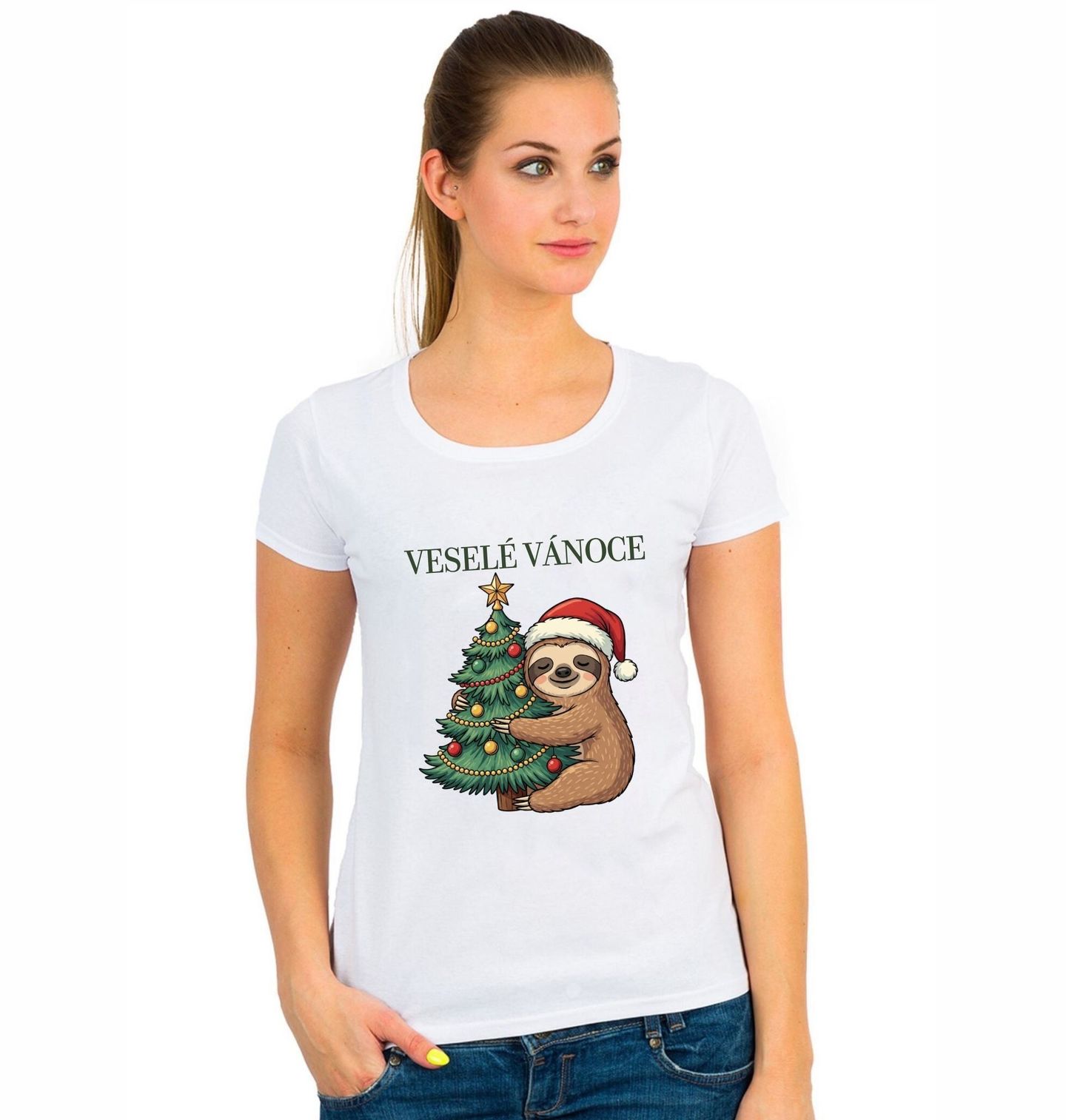 Dámské tričko Vánoční Lenochod u Stromečku Veselé Vánoce