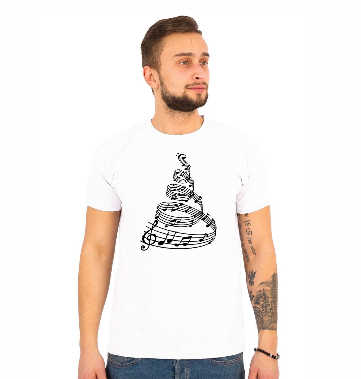 Pánské tričko Vánoční Melodie. Noty tvoří elegantní vánoční stromek, který symbolizuje radost z koled a kouzlo hudby během nejkrásnějších svátků roku. Tento design je ideální pro všechny milovníky hudby, kteří chtějí ukázat, že jejich Vánoce nejsou jen o dárkách, ale i o melodiích a zpěvu.
