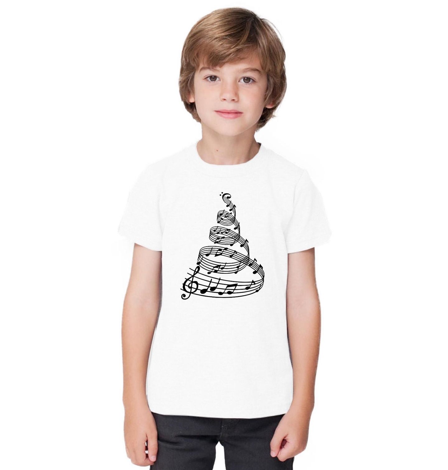 Dětské tričko Vánoční Melodie. Noty tvoří elegantní vánoční stromek, který symbolizuje radost z koled a kouzlo hudby během nejkrásnějších svátků roku. Tento design je ideální pro všechny milovníky hudby, kteří chtějí ukázat, že jejich Vánoce nejsou jen o dárkách, ale i o melodiích a zpěvu.