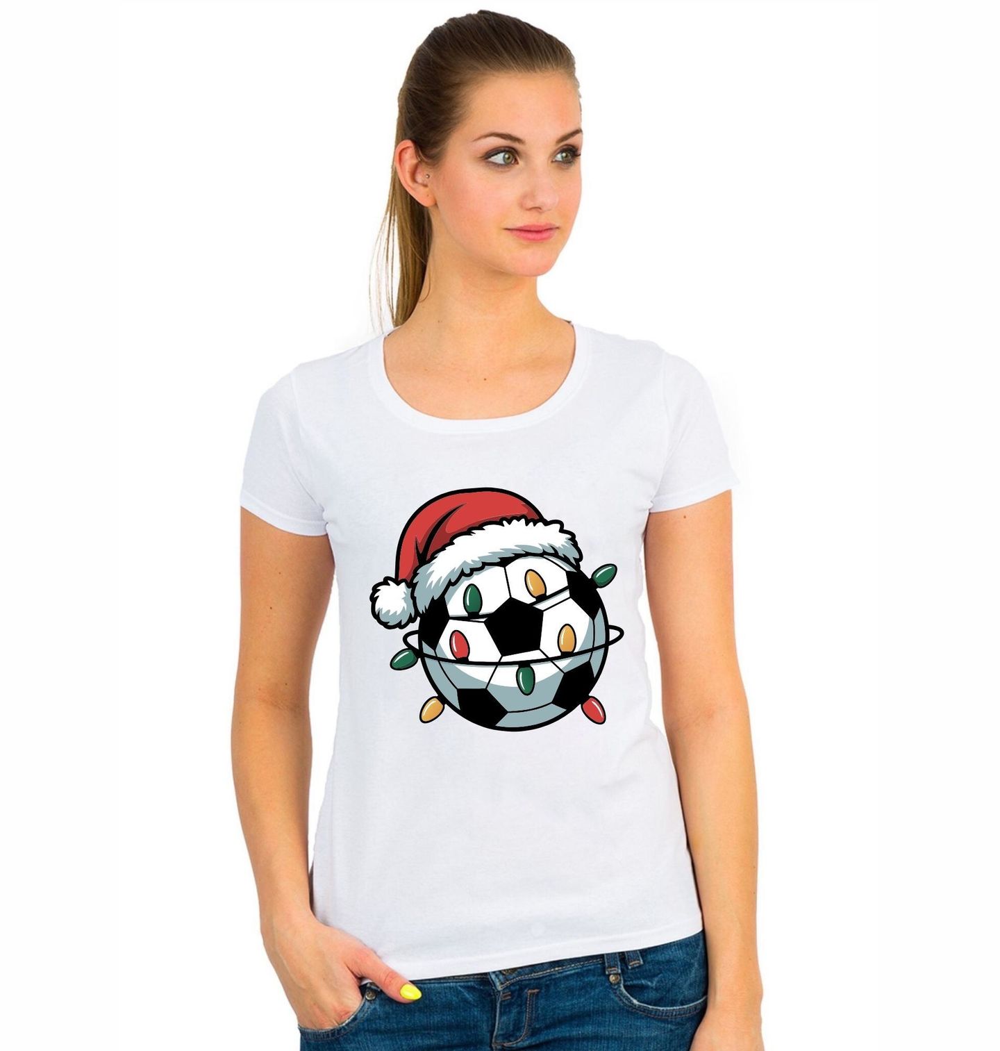 Dámské tričko Vánoční Míč Fotbalisty. Hledáte originální vánoční motiv pro fotbalového nadšence? Pak je tu vtipný a stylový design, který potěší každého milovníka zeleného trávníku! Vánoce v duchu sportu jsou to pravé! Spojte radost z fotbalu s atmosférou svátků a ukažte, že vaše srdce bije pro míč i během zimní pauzy.