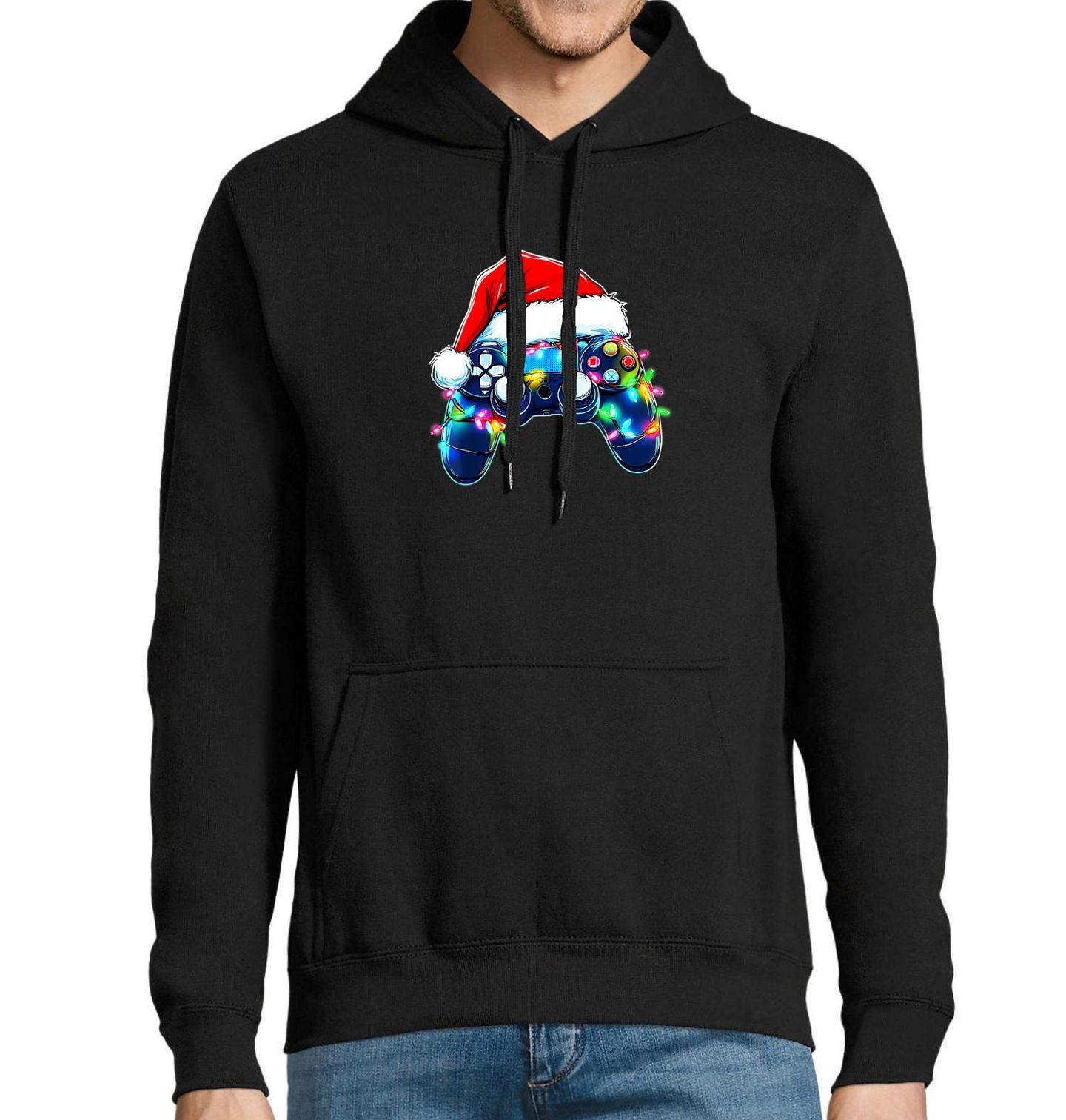Pánská mikina Vánoční Ovladač s Čepicí. Stylový herní ovladač obtočený vánočními světýlky a ozdobený čepicí Santa Clause je dokonalým symbolem spojení vánoční pohody a vášnivého gamingu. Motiv je ideální pro každého hráče, koho baví gaming, miluje ovladač ve vlastních rukou a chce si užít Vánoce s herní náladou.