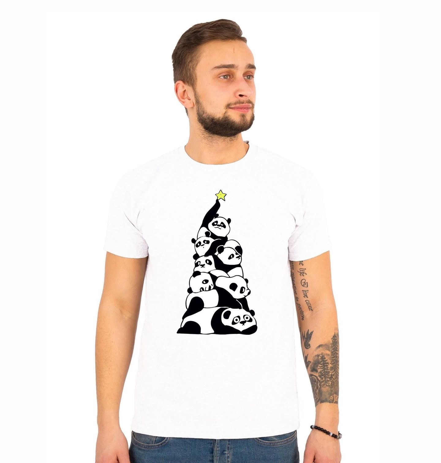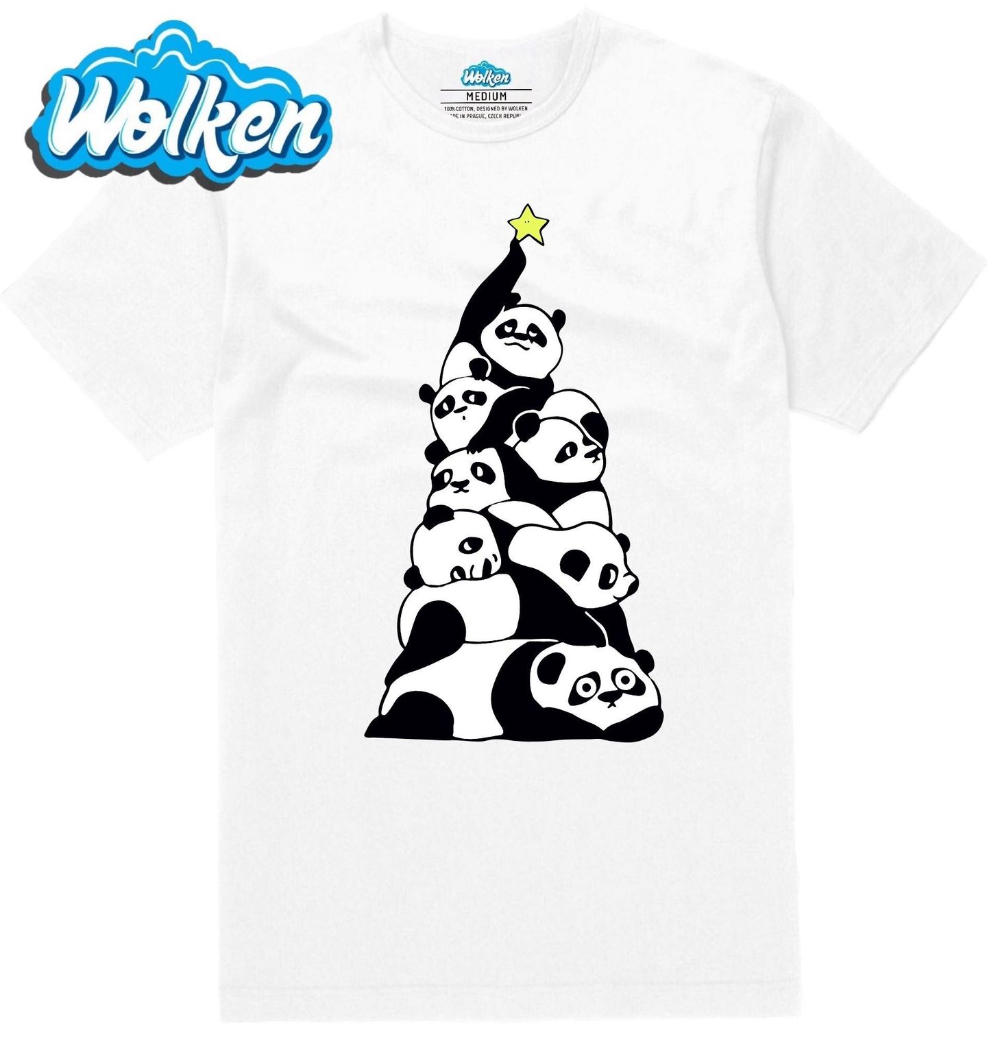 Pánské tričko Vánoční Pandí Stromek. Originální motiv, který spojuje Vánoce s roztomilými pandami! Místo klasických ozdob se pandy poskládaly do tvaru vánočního stromku a na vrcholu nesou hvězdu. Tento design dokonale spojuje kouzlo svátků a roztomilost pand.