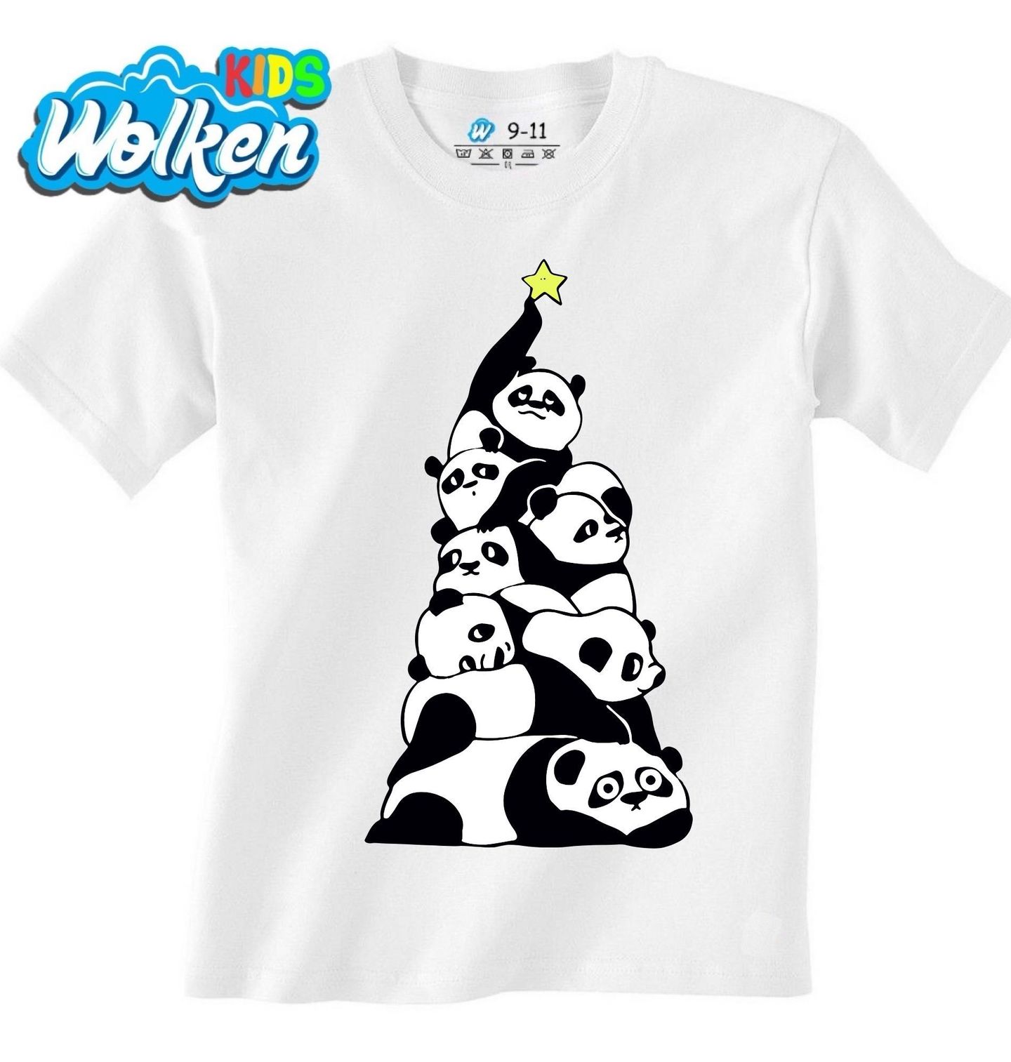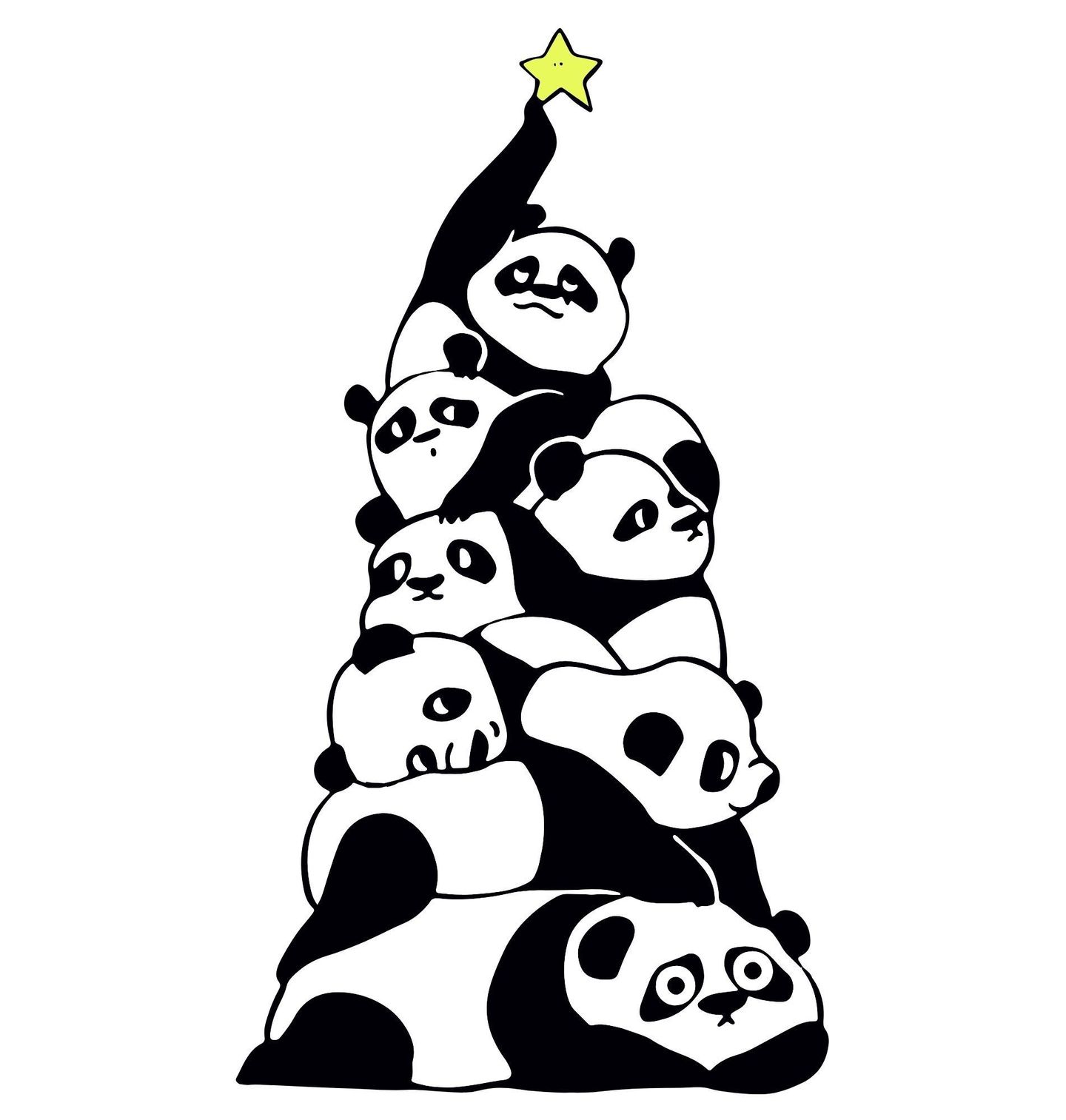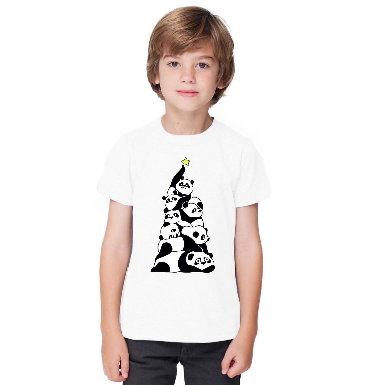 Dětské tričko Vánoční Pandí Stromek. Originální motiv, který spojuje Vánoce s roztomilými pandami! Místo klasických ozdob se pandy poskládaly do tvaru vánočního stromku a na vrcholu nesou hvězdu. Tento design dokonale spojuje kouzlo svátků a roztomilost pand.
