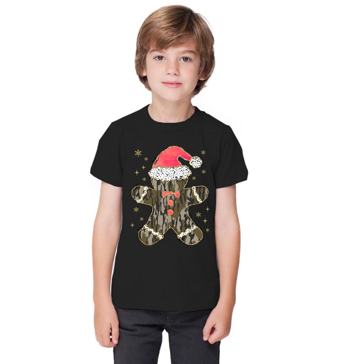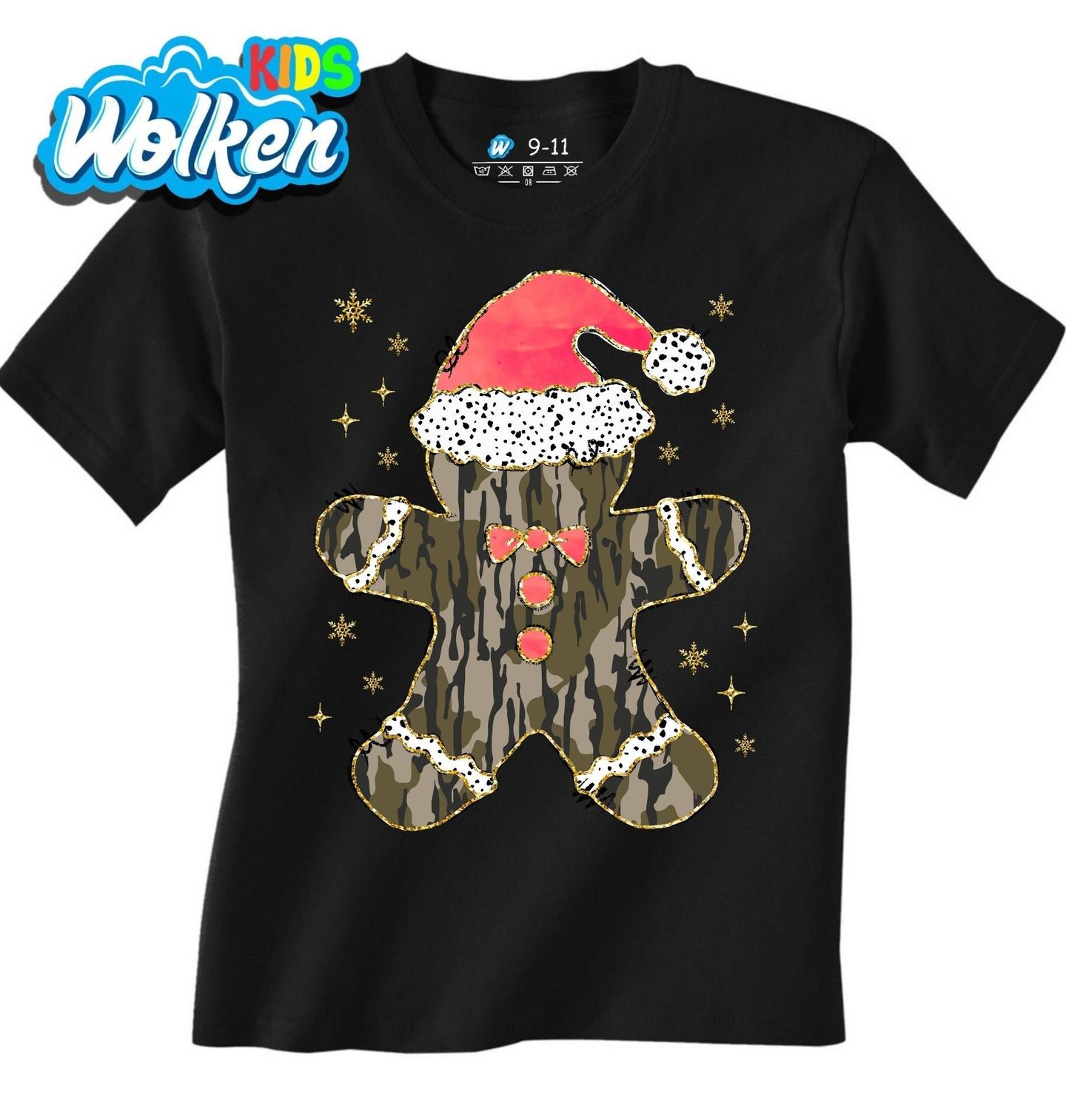 Dětské tričko Vánoční Perníček. Perníková postavička je doplněna o červenou čepici a knoflíky, což jí dodává nezaměnitelný vánoční nádech. Tento jedinečný styl je ideální pro ty, kteří chtějí oslavit Vánoce s humorem a v neokoukaném provedení. Motiv je doplněn třpytivými hvězdičkami a vločkami pro dokonalou sváteční atmosféru.