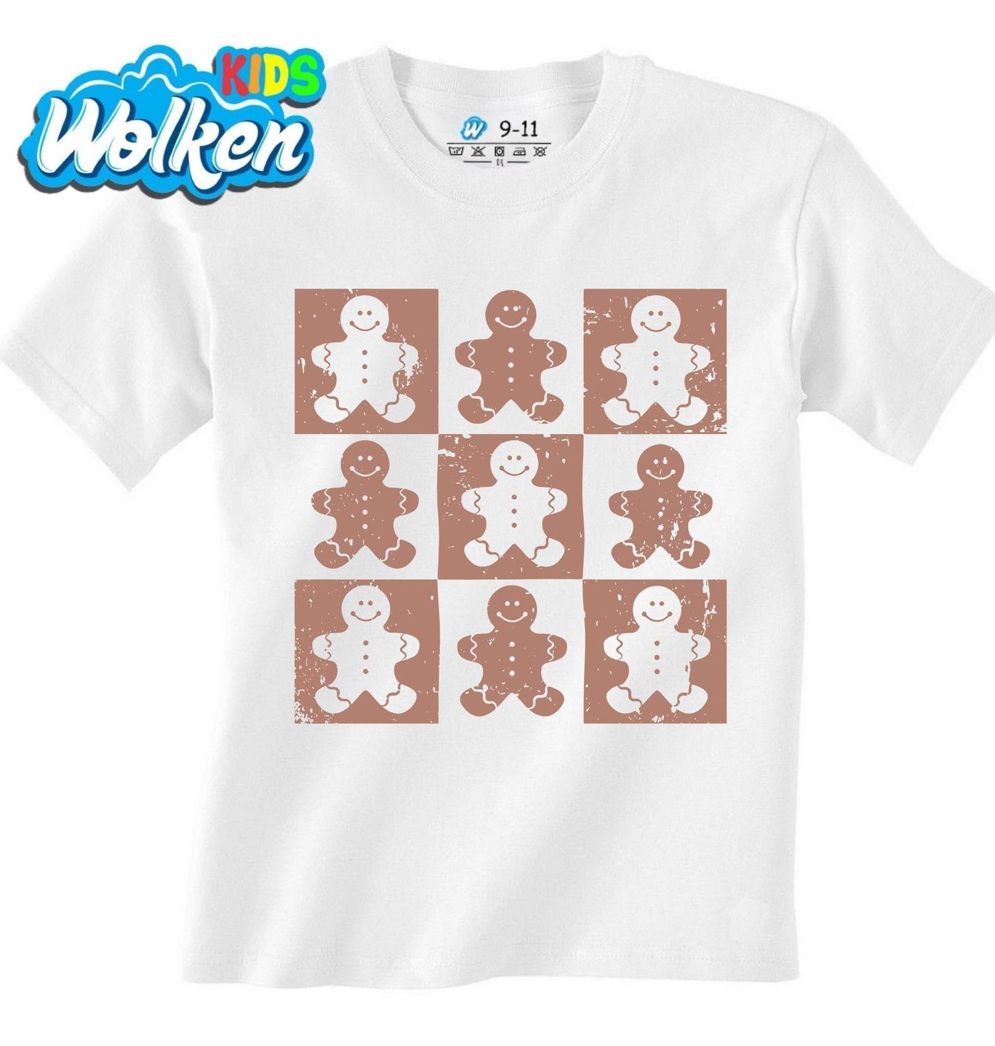 Dětské tričko Vánoční Perníčky Gingerbread man. Devět roztomilých perníčků ve stylu razítkového potisku tvoří dokonalou kombinaci tradice a hravosti. Tento design je ideální pro všechny kdo milují Vánoce, nostalgii a perníkové cukroví. Skvělý dárek nebo stylový doplněk na období plné vůní, chutí a tepla domova.