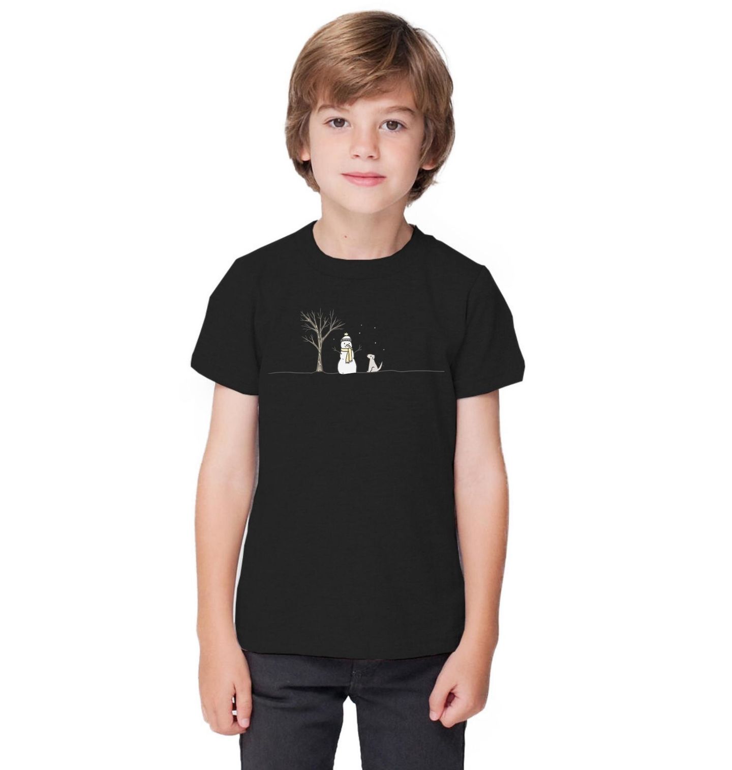 Dětské tričko Vánoční přátelství Sněhulák a Pes. Vánoce jsou časem lásky, klidu a věrných přátel. A kdo je věrnější než pes? Tento něžný zimní motiv s pejskem a sněhulákem potěší každého pejskaře a milovníka zvířat. Skvělý dárek pro každého, koho spojuje láska ke psům a kouzlu Vánoc.