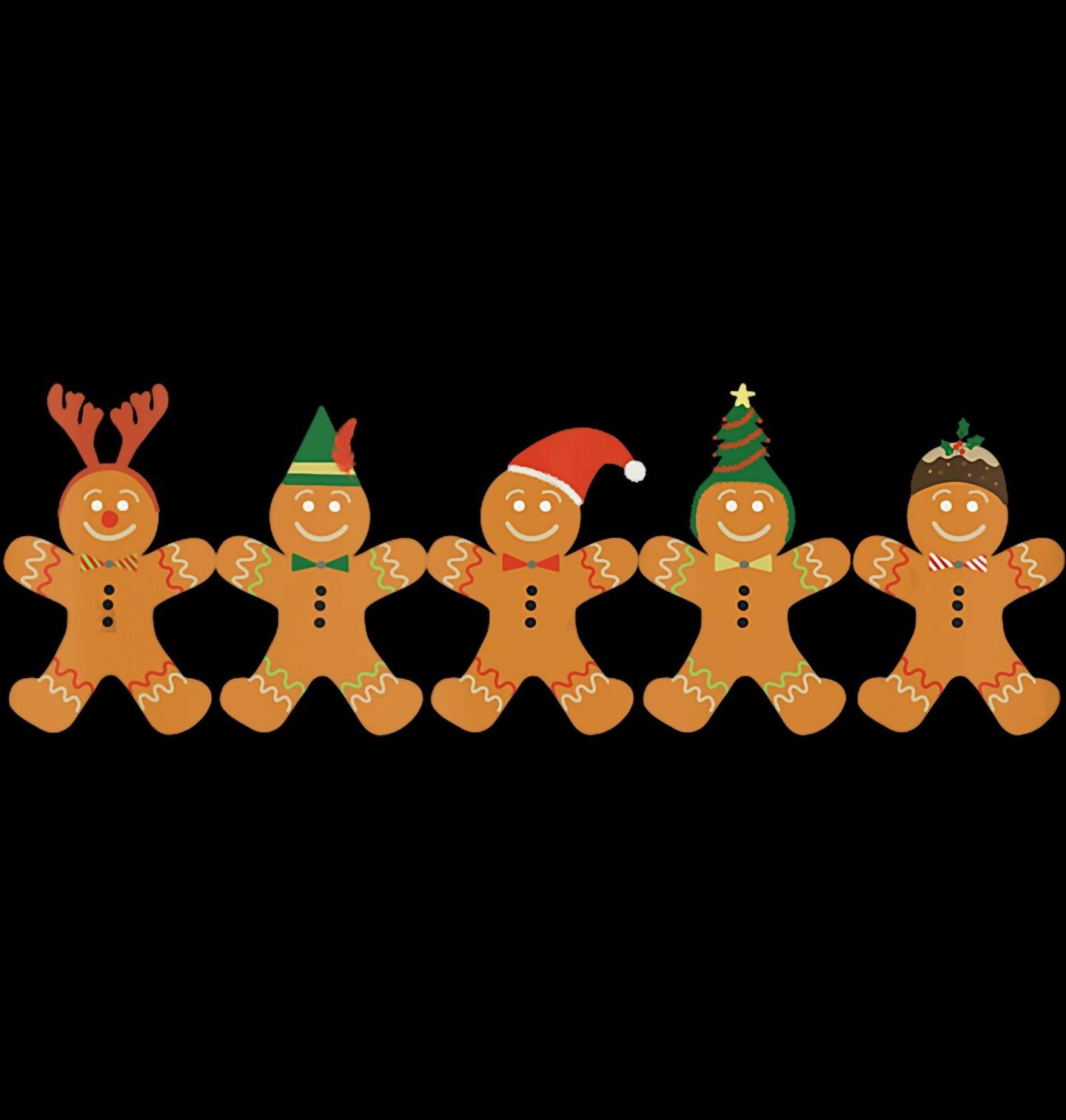 Dámské tričko Vánoční Řetěz z Perníčků. Rozkošný motiv, který k Vánocům prostě patří – řada usměvavých perníčků, každý ozdobený jinak: sobí parůžky, elfí čepička, Santa Claus, vánoční stromeček a sváteční pudink. Perfektní pro všechny, kdo milují Vánoce, sladké tradice a perníček jako symbol zimního období.