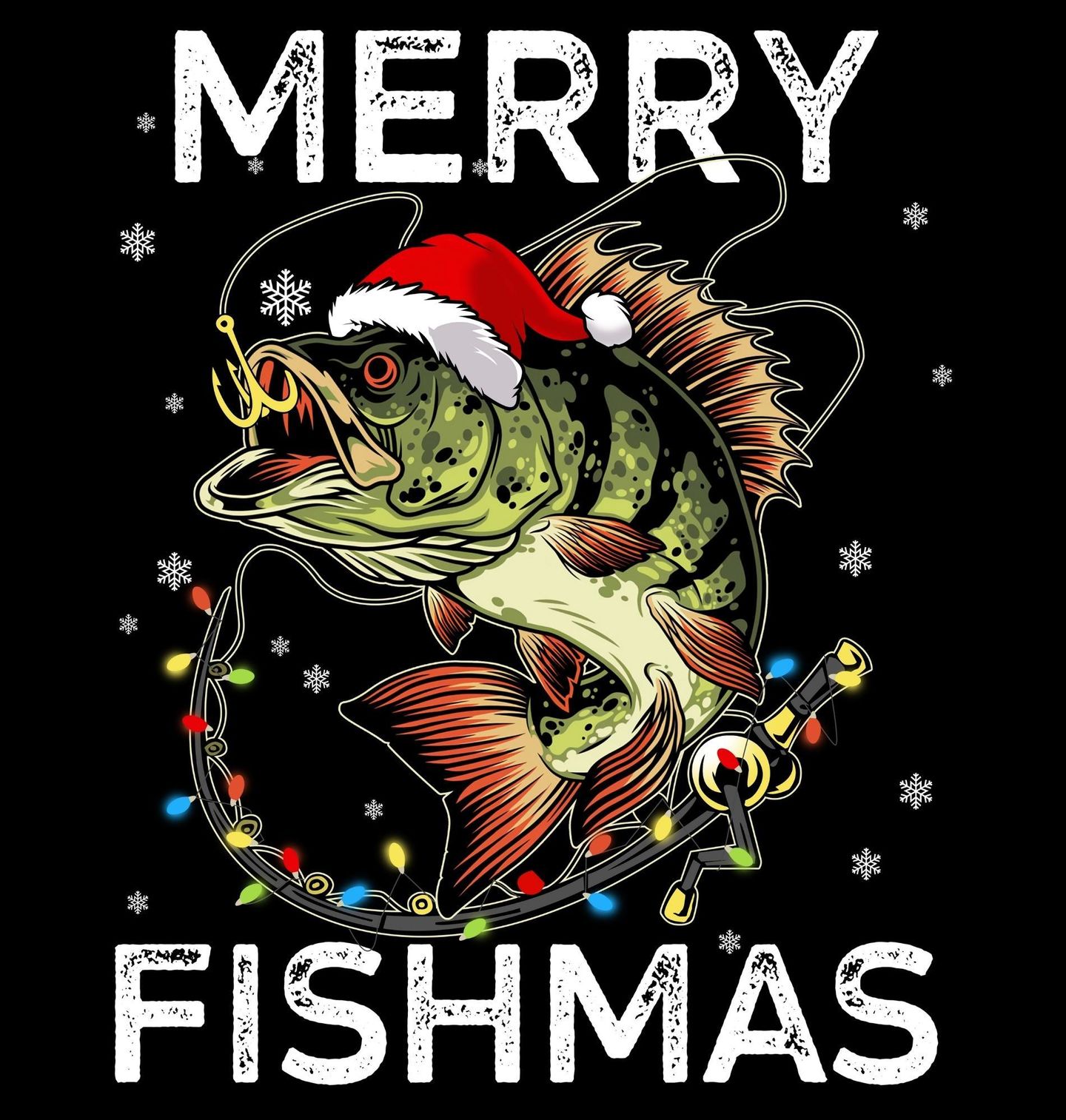 Dámské tričko Vánoční Ryba na Háčku Merry Fishmas. Originální motiv „Merry Fishmas“ potěší každého milovníka vody a prutů! Tahle vánoční ryba ve stylu Santy se světýlky a háčkem je dokonalým dárkem pro každého rybáře, který chce oslavit Vánoce po svém – u vody.