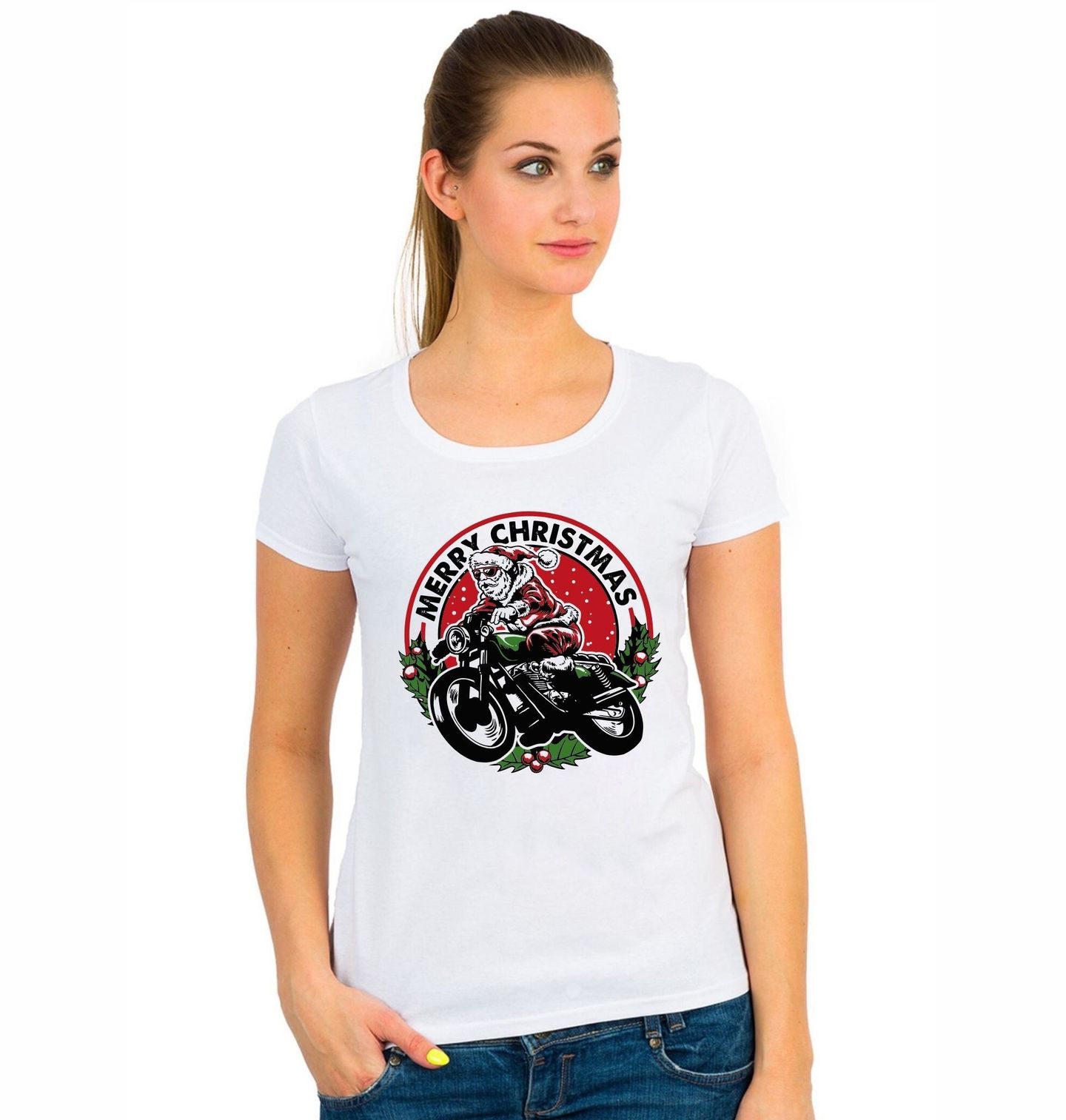 Dámské tričko Vánoční Santa na Motorce Merry Christmas