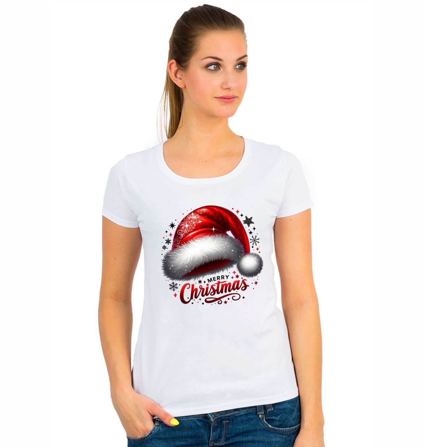Dámské tričko Vánoční Santova Čepice. Ikonický symbol, který nesmí chybět – červená čepice s bílým lemem, která křičí Merry Christmas. Přeneste vánoční náladu na e-shop, do domácnosti nebo jako stylový doplněk na sváteční párty. Vánoce v klasickém stylu, který potěší děti i dospělé.