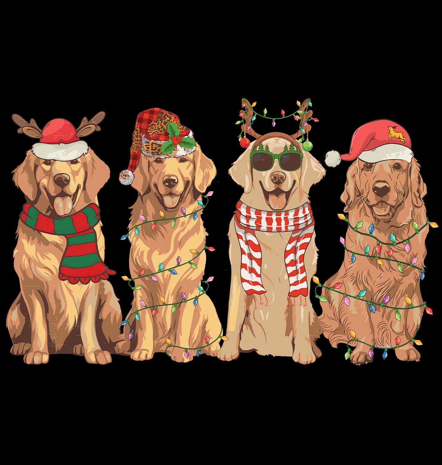 Dámské tričko Vánoční Smečka Zlatých Retrívrů. Připravte se na nejroztomilejší Vánoce se čtveřicí zlatých retrívrů, kteří vám vykouzlí úsměv na tváři! Každý pes má vlastní styl – od sobích parůžků přes santovskou čepici až po brýle a šálu. Vánoce jsou ideální příležitostí potěšit každého pejskaře originálním dárkem s motivem jeho oblíbeného plemene.