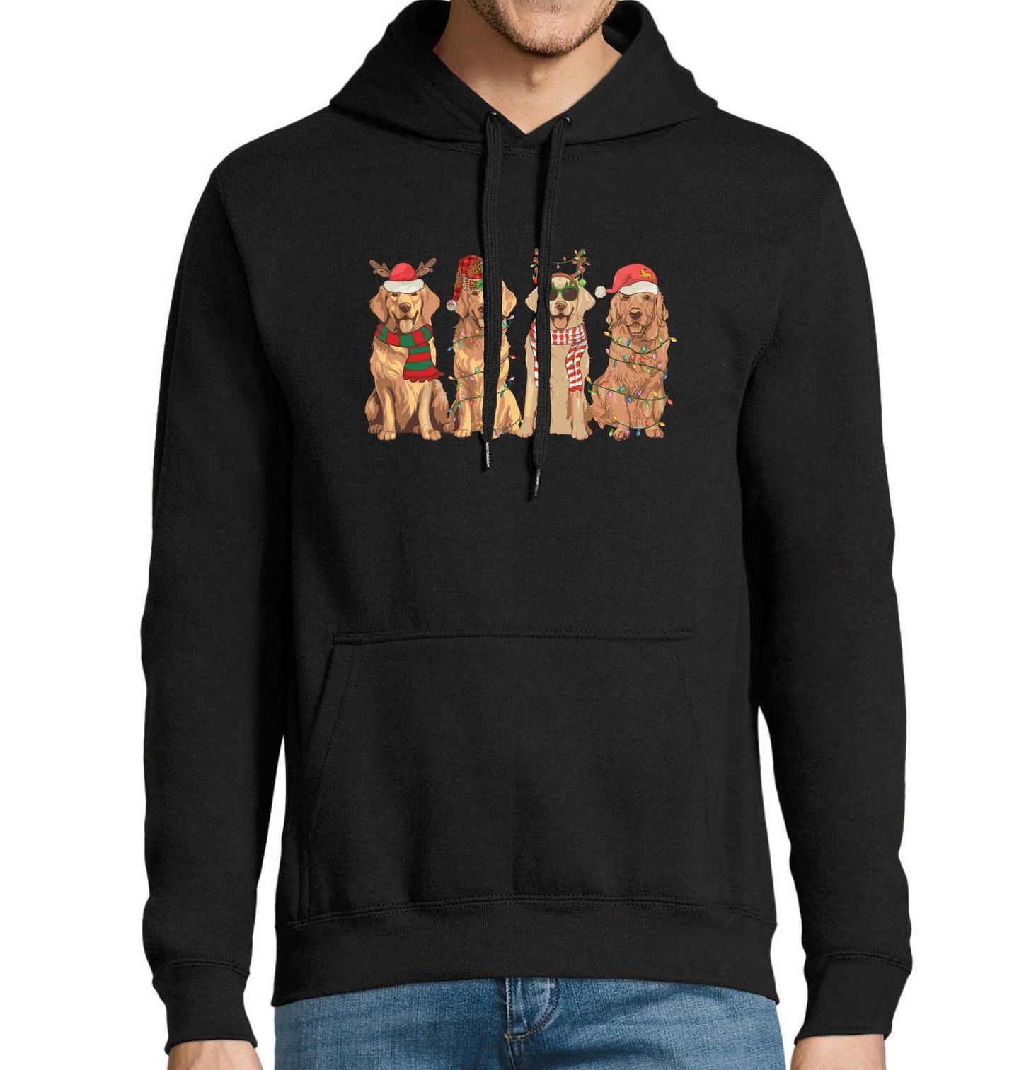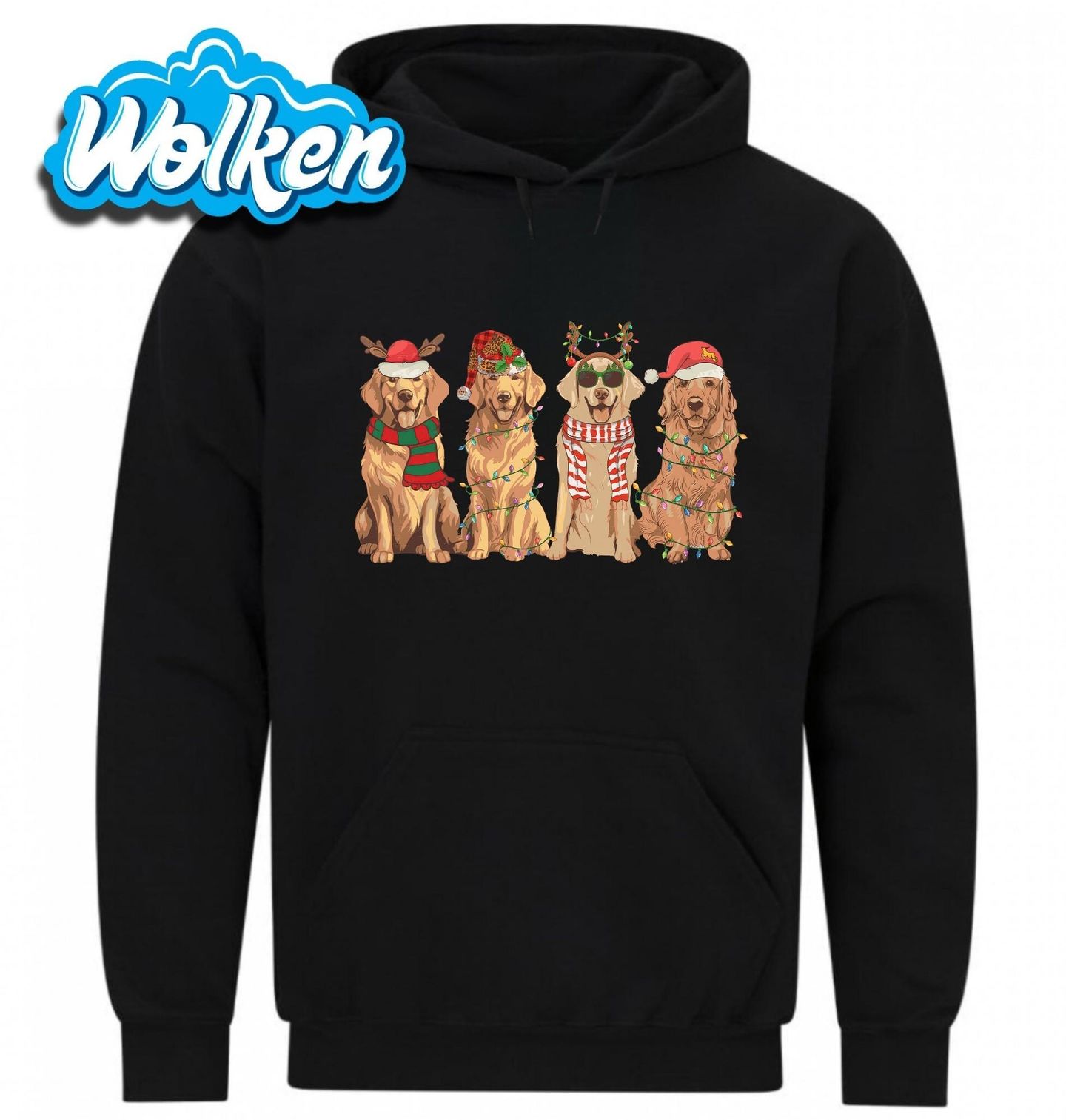 Pánská mikina Vánoční Smečka Zlatých Retrívrů. Připravte se na nejroztomilejší Vánoce se čtveřicí zlatých retrívrů, kteří vám vykouzlí úsměv na tváři! Každý pes má vlastní styl – od sobích parůžků přes santovskou čepici až po brýle a šálu. Vánoce jsou ideální příležitostí potěšit každého pejskaře originálním dárkem s motivem jeho oblíbeného plemene.