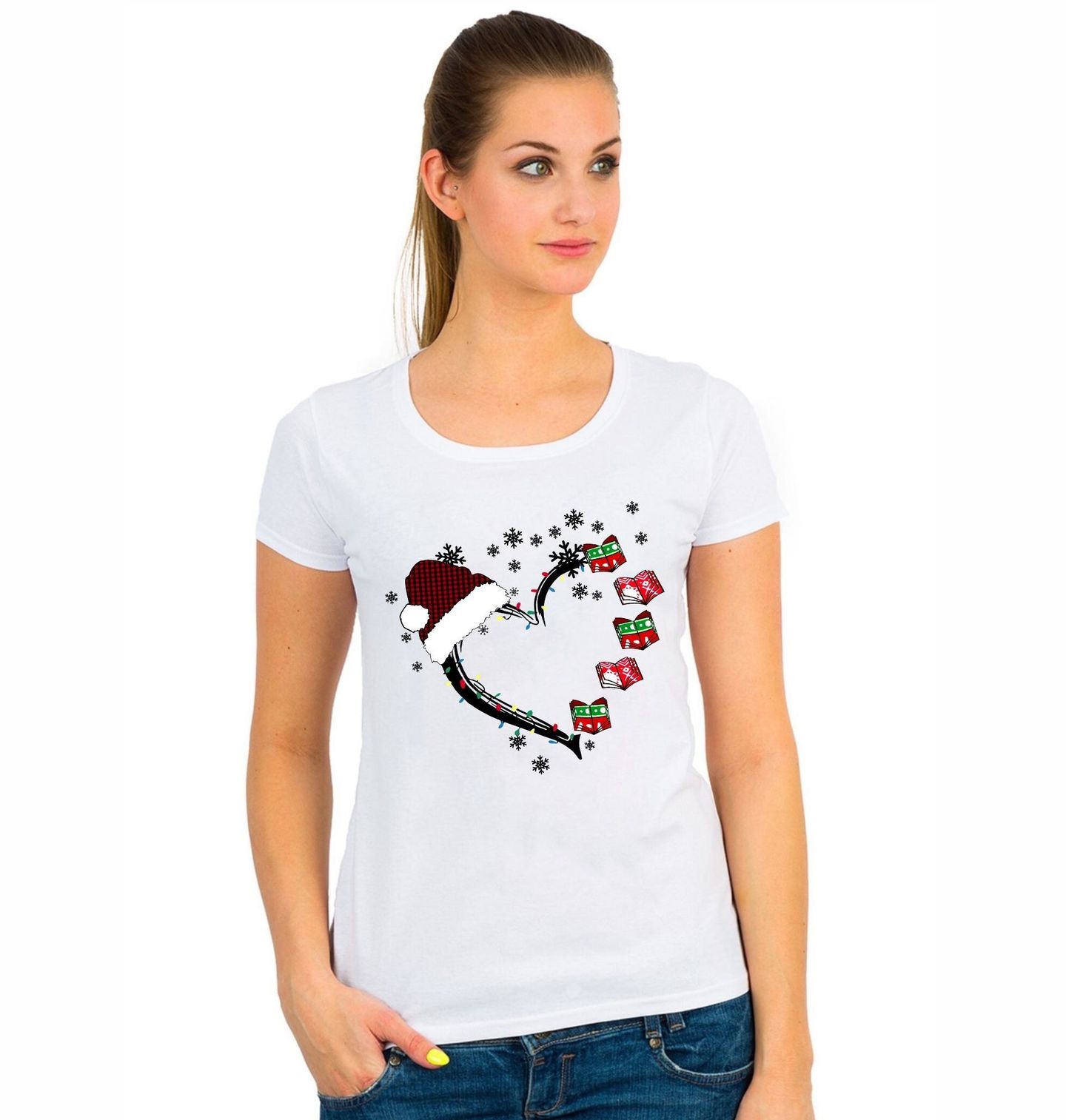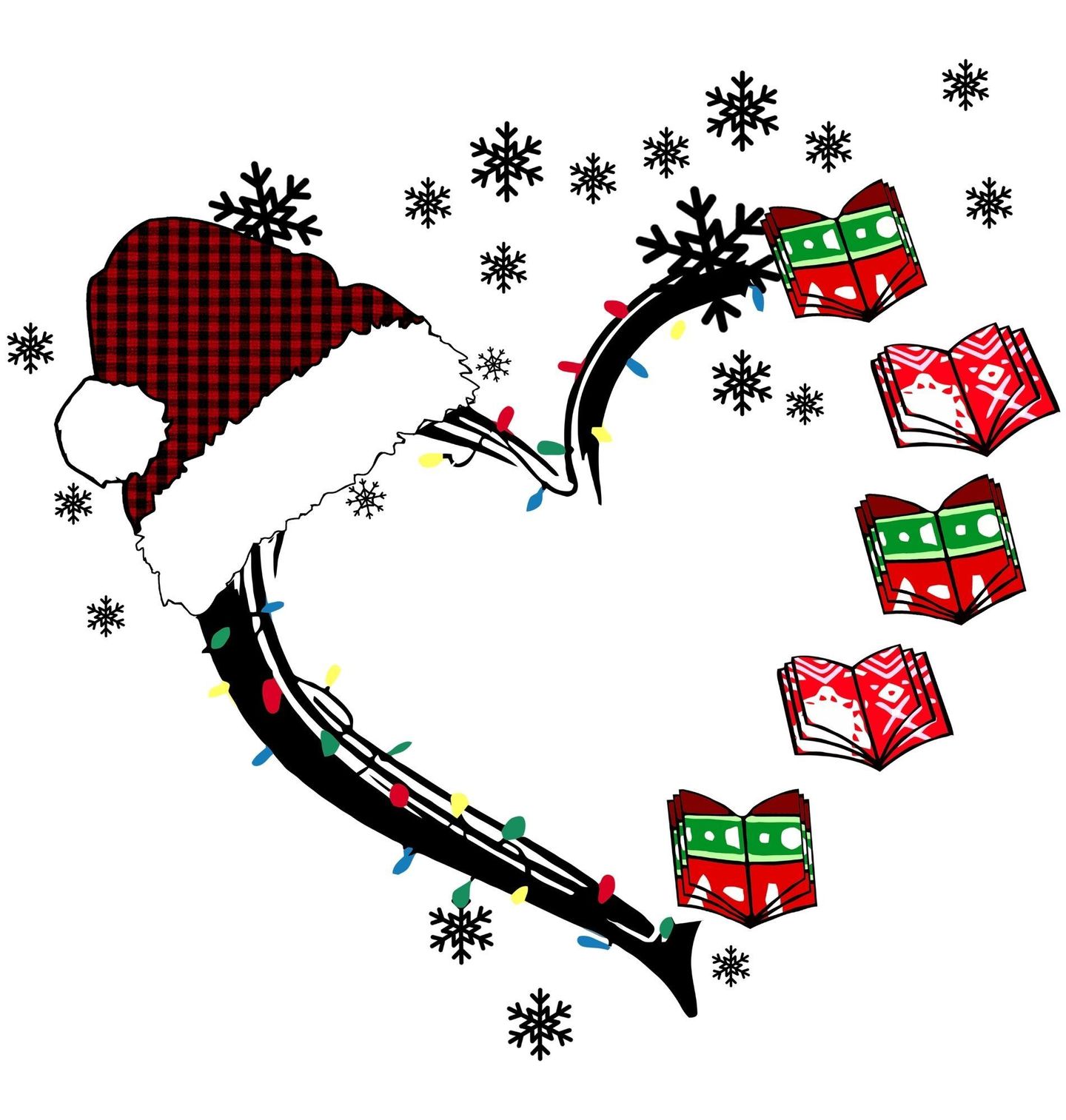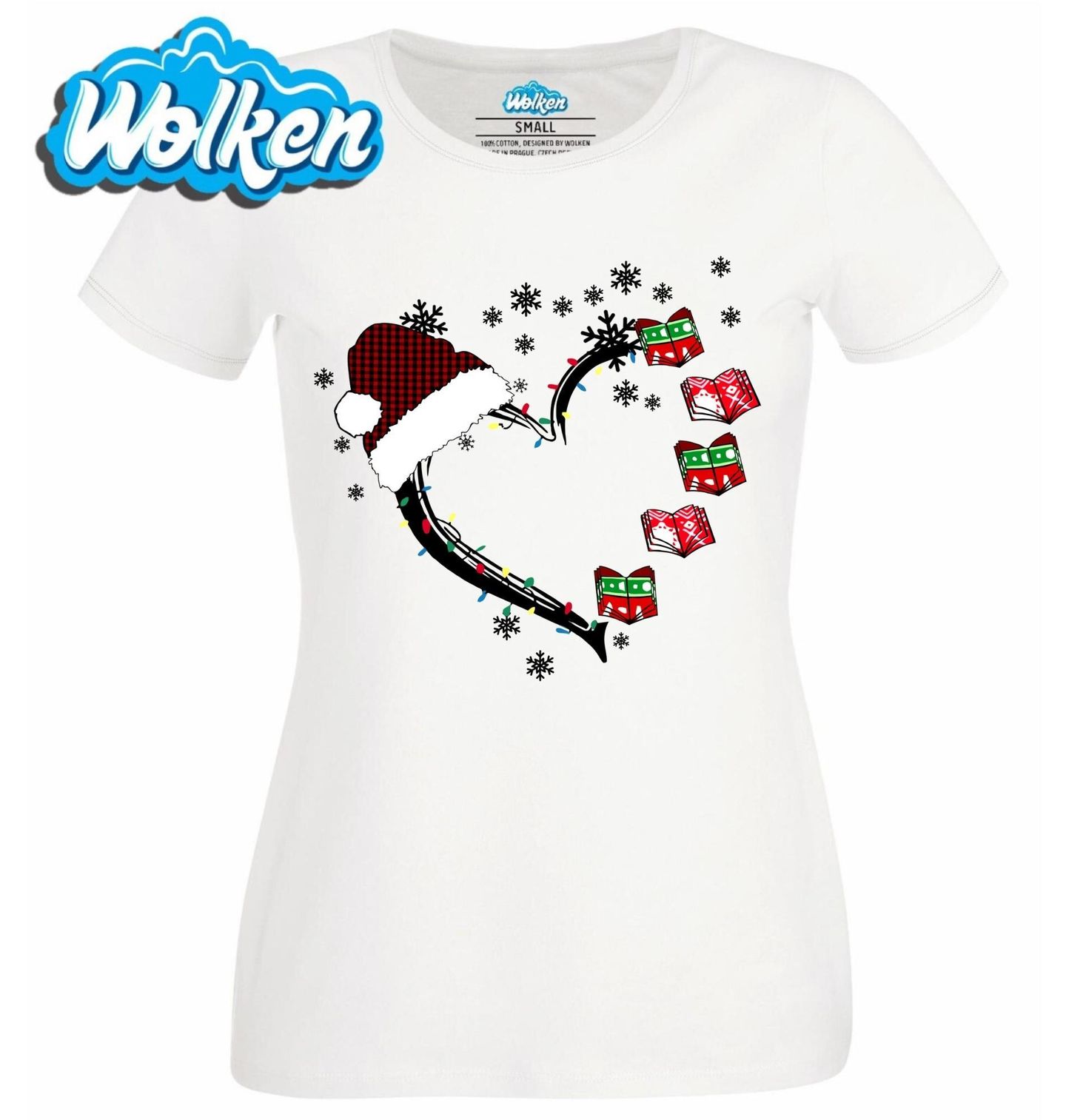 Dámské tričko Vánoční Srdce Čtenáře. Černé hudební srdce s vánoční čepicí, světýlky a poletujícími knížkami symbolizuje tu pravou sváteční pohodu. Tento design je jako stvořený pro každého, komu Vánoce evokují chvíle klidu, čtení a radost z příběhů. Vánoce, srdce, kniha, čtení – pohoda, která se nosí.