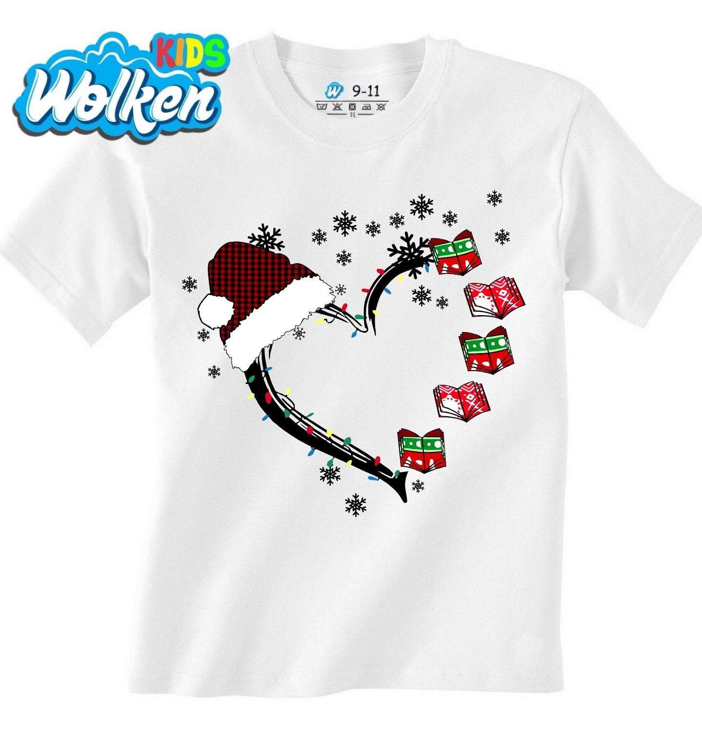 Dětské tričko Vánoční Srdce Čtenáře. Černé hudební srdce s vánoční čepicí, světýlky a poletujícími knížkami symbolizuje tu pravou sváteční pohodu. Tento design je jako stvořený pro každého, komu Vánoce evokují chvíle klidu, čtení a radost z příběhů. Vánoce, srdce, kniha, čtení – pohoda, která se nosí.