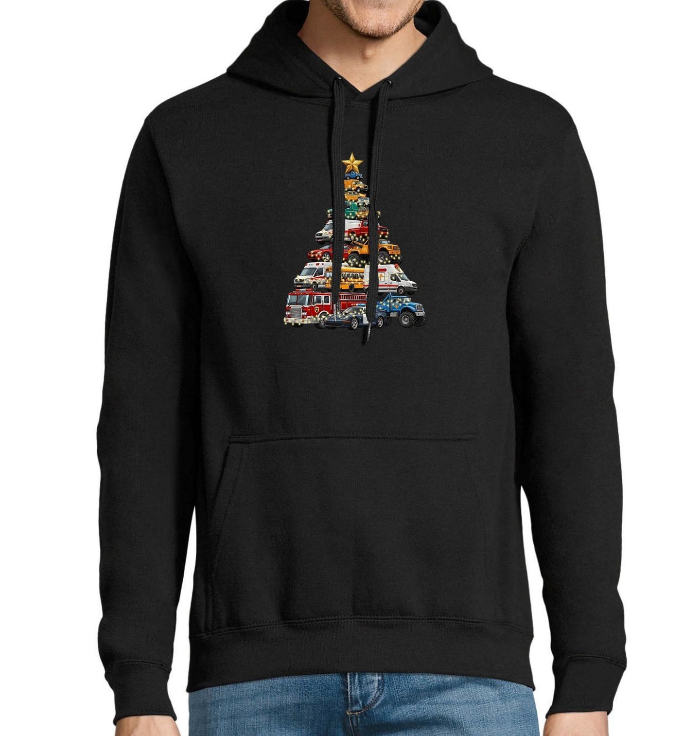 Pánská mikina Vánoční Stromek z Aut. Stylový vánoční stromeček poskládaný výhradně z různých druhů aut – od hasičského vozu přes sanitky, školní autobus až po taxi nebo policejní auto – je ideálním dárkem na Vánoce pro každého automobilového nadšence. Perfektní pro řidiče, mechaniky, milovníky aut i děti.