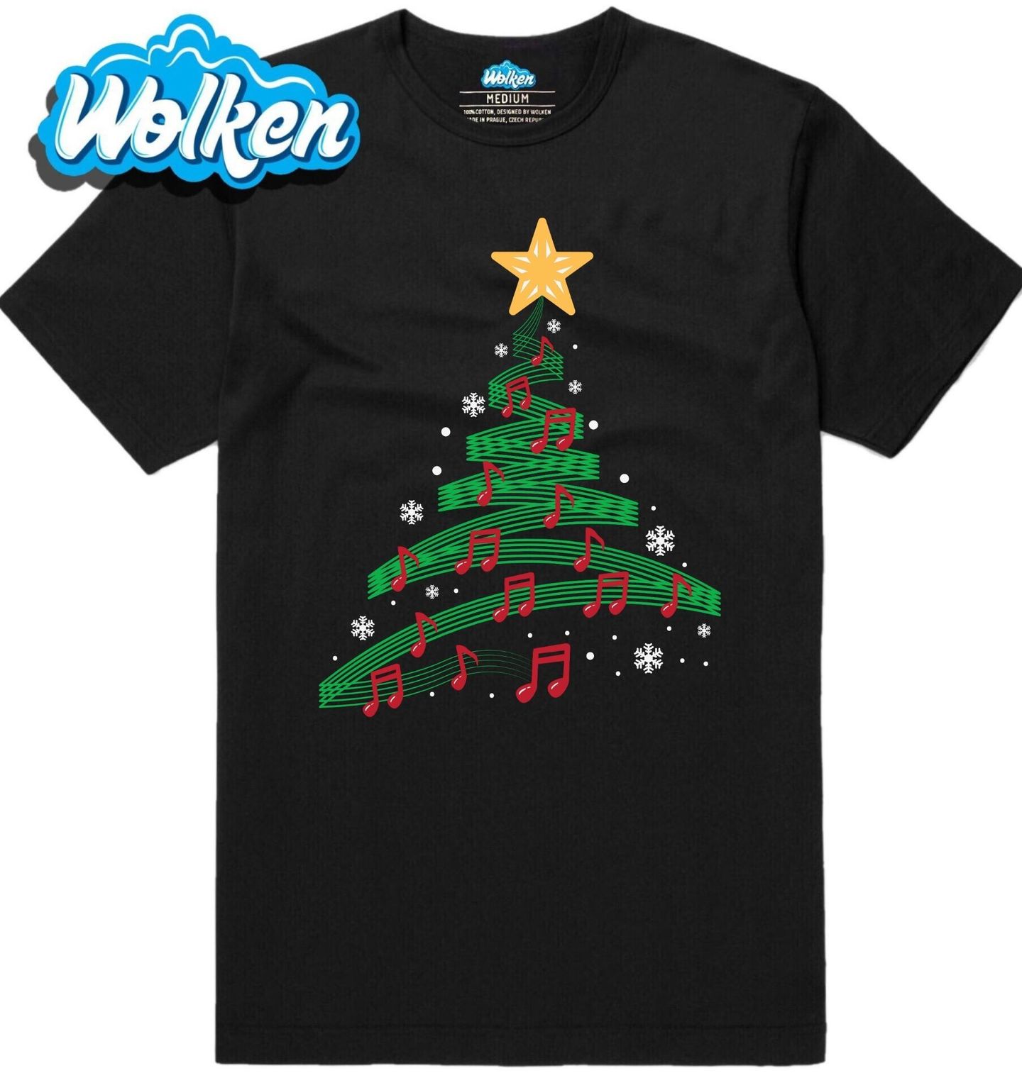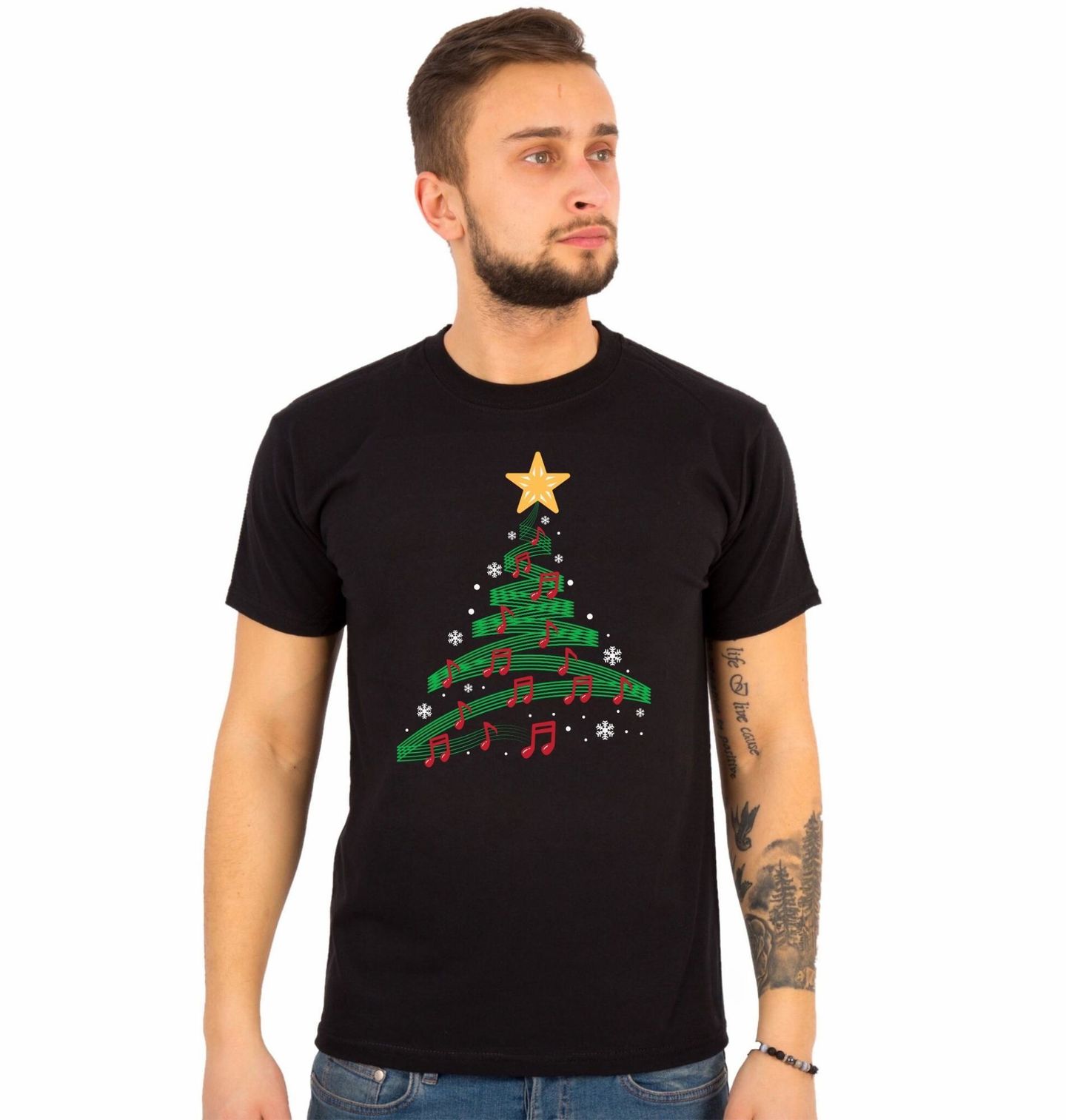 Pánské tričko Vánoční Stromek z Not. Vánoce jsou časem radosti, pohody a hudby! Tento originální motiv zobrazuje vánoční stromeček, noty a žlutou hvězdu na vrcholu. Kolem stromku poletují sněhové vločky a sníh. Skvělý dárek pro hudebníky, zpěváky i všechny, kdo milují Vánoce a hudbu v jednom.