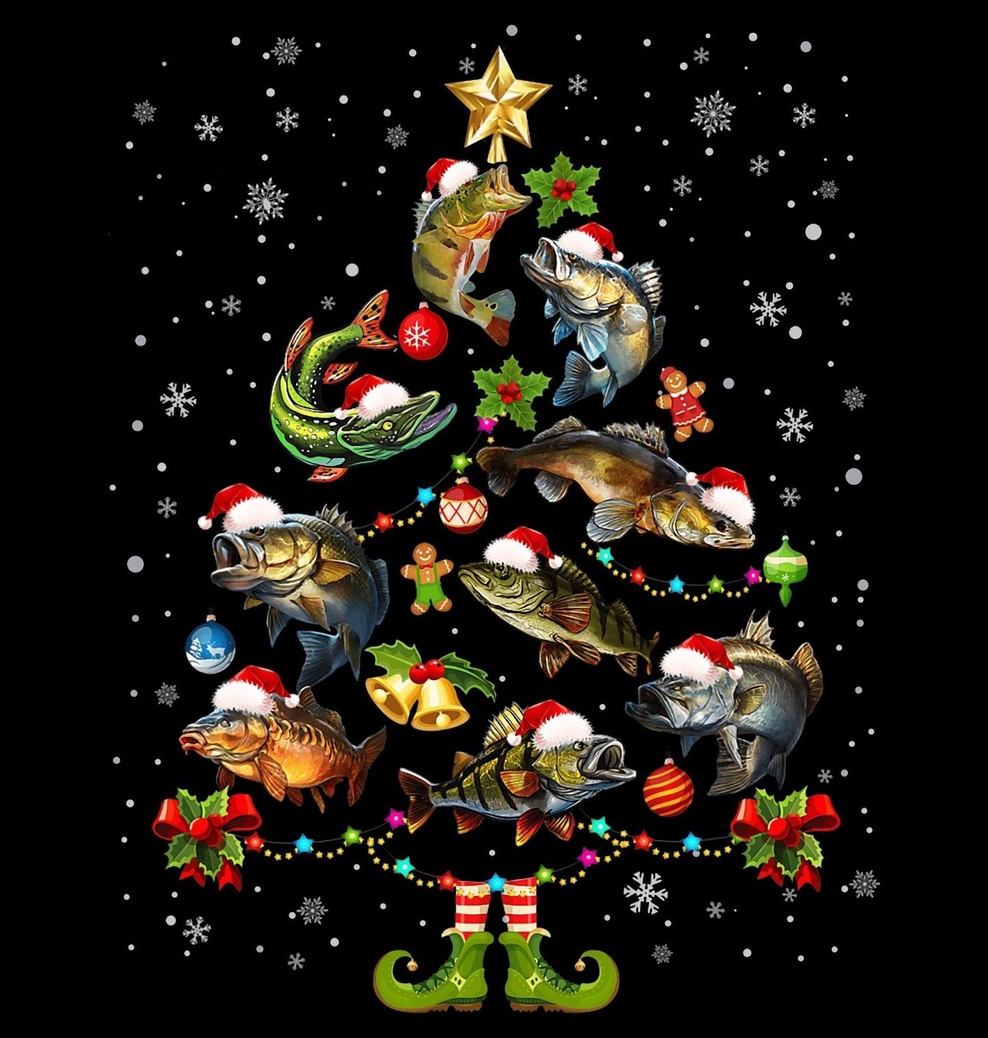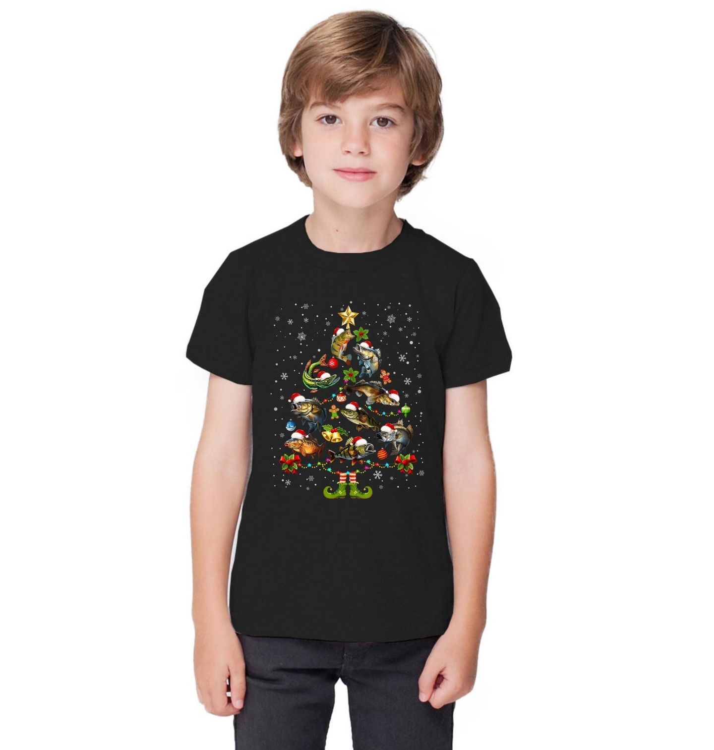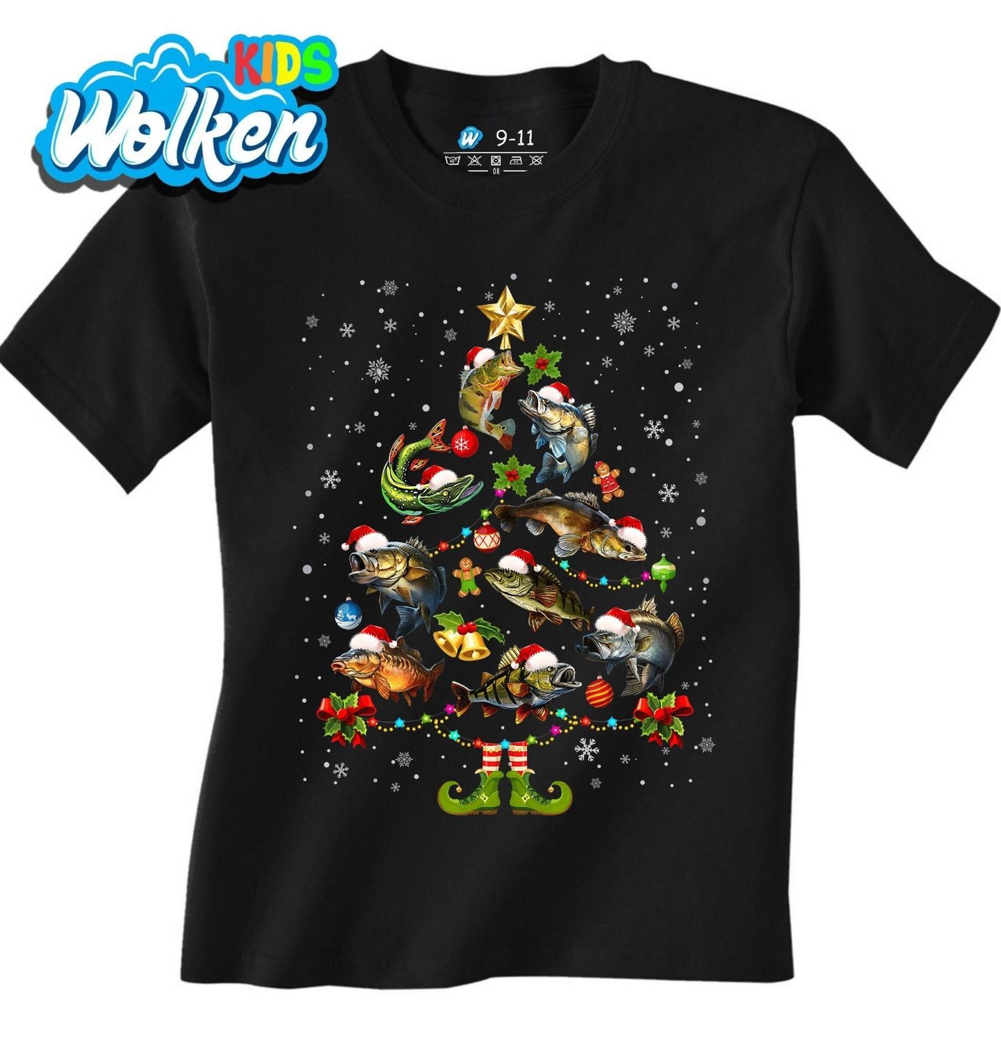 Dětské tričko Vánoční Stromek z Ryb. Veselý a netradiční motiv, kde hrají hlavní roli Vánoce, ryby a rybářský humor! Tento originální vánoční stromek je postavený z různých druhů ryb, ozdobených čepicemi, baňkami a světýlky – dokonalý dárek pro každého, kdo miluje rybaření.