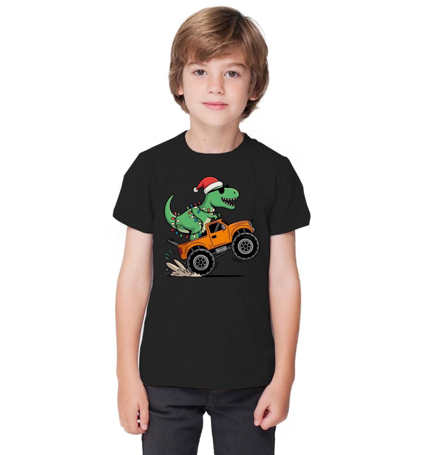 Dětské tričko Vánoční T-Rex v Monster Trucku
