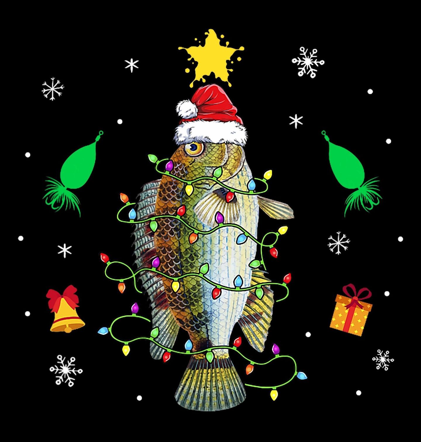 Pánské tričko Vánoční Trofej Rybáře. Vánoce jsou ideální čas ukázat svou lásku k rybaření a rybám! Tento veselý motiv s rybou okounkem v Santa čepici a obtočeným vánočním světelným řetězem potěší každého rybáře. Ryba okounek je oblíbená pro své krásné zbarvení a je symbolem rybaření na jezerech i řekách.