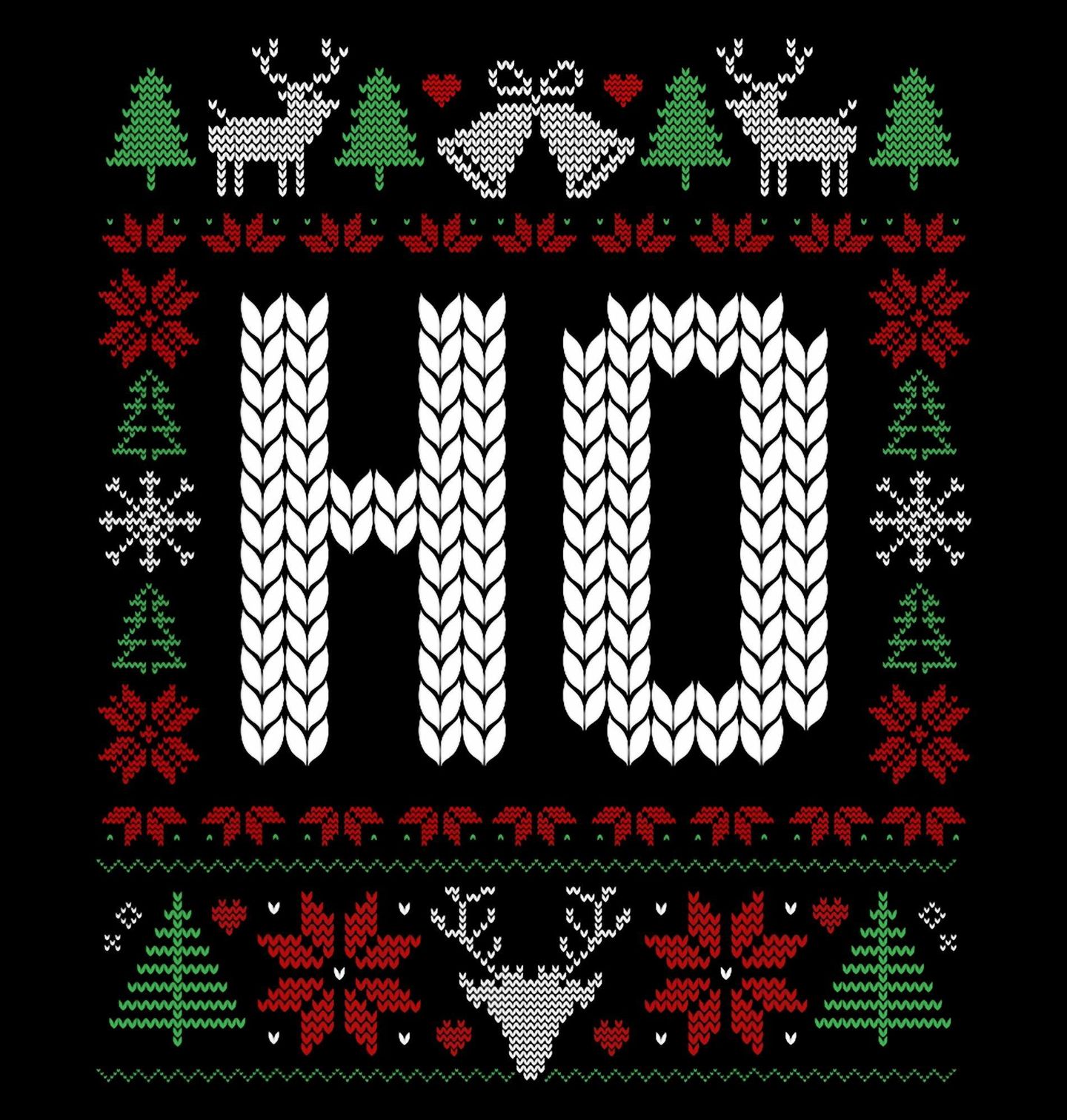 Dětské tričko Vánoční ugly sweater HO. Vánoce jsou časem pohody, humoru a ošklivých svetrů – proto je tento motiv ideální pro každého, kdo má rád klasický ugly sweater styl. Pletený nápis „HO“ s vánočními stromky, soby, vločkami a hvězdami připomíná retro svetry, které se staly ikonou vánočních večírků.