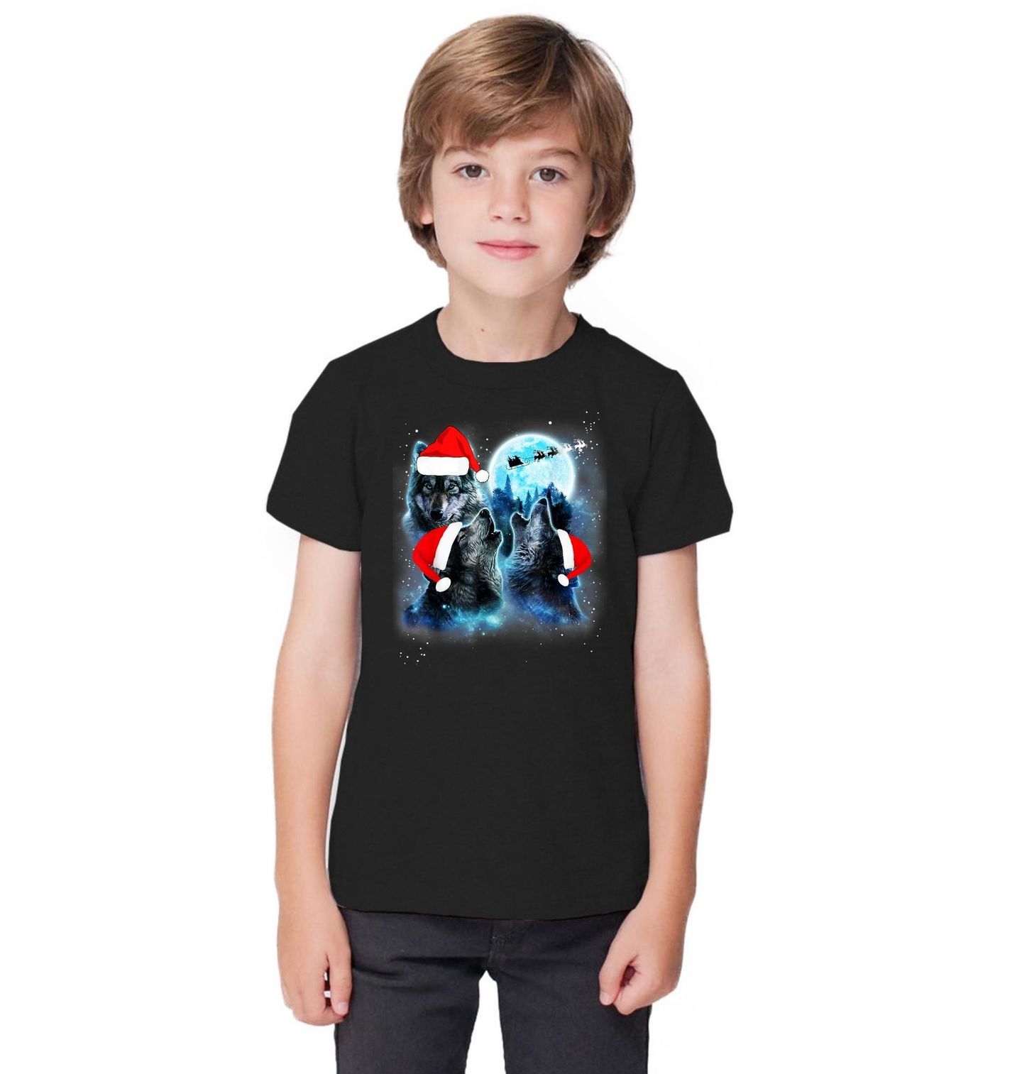 Dětské tričko Vánoční Vlci vyjící na Měsíc