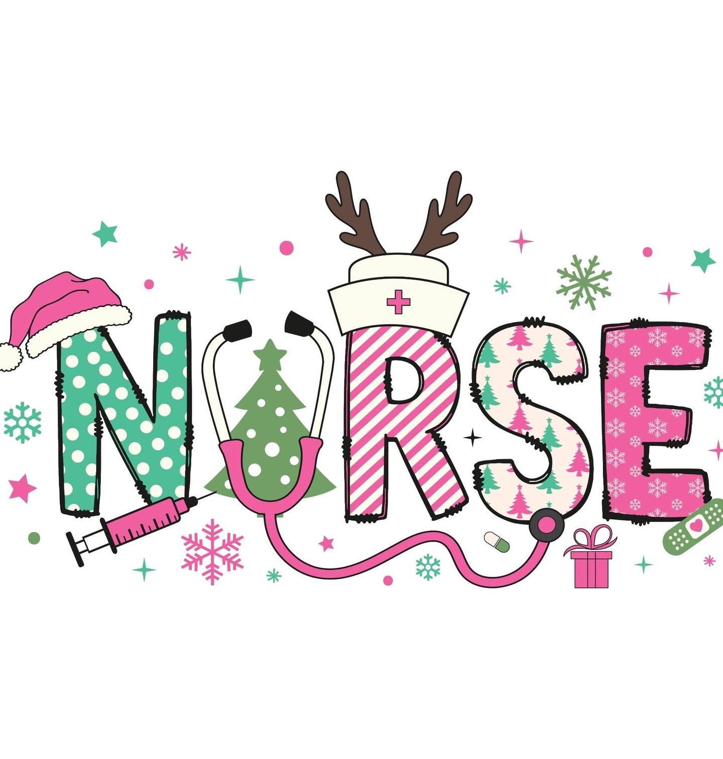 Pánské tričko Vánoční Zdravotní Sestrička Nurse. Veselý a hravý motiv ideální pro Vánoce, který ocení každý lékař, doktor nebo zdravotník! Nápis „NURSE“ ve vánočním stylu s čepičkou, fonendoskopem, injekcí a vánočními dekoracemi vyjadřuje obdiv ke zdravotnictví a těm, kteří v něm pracují.