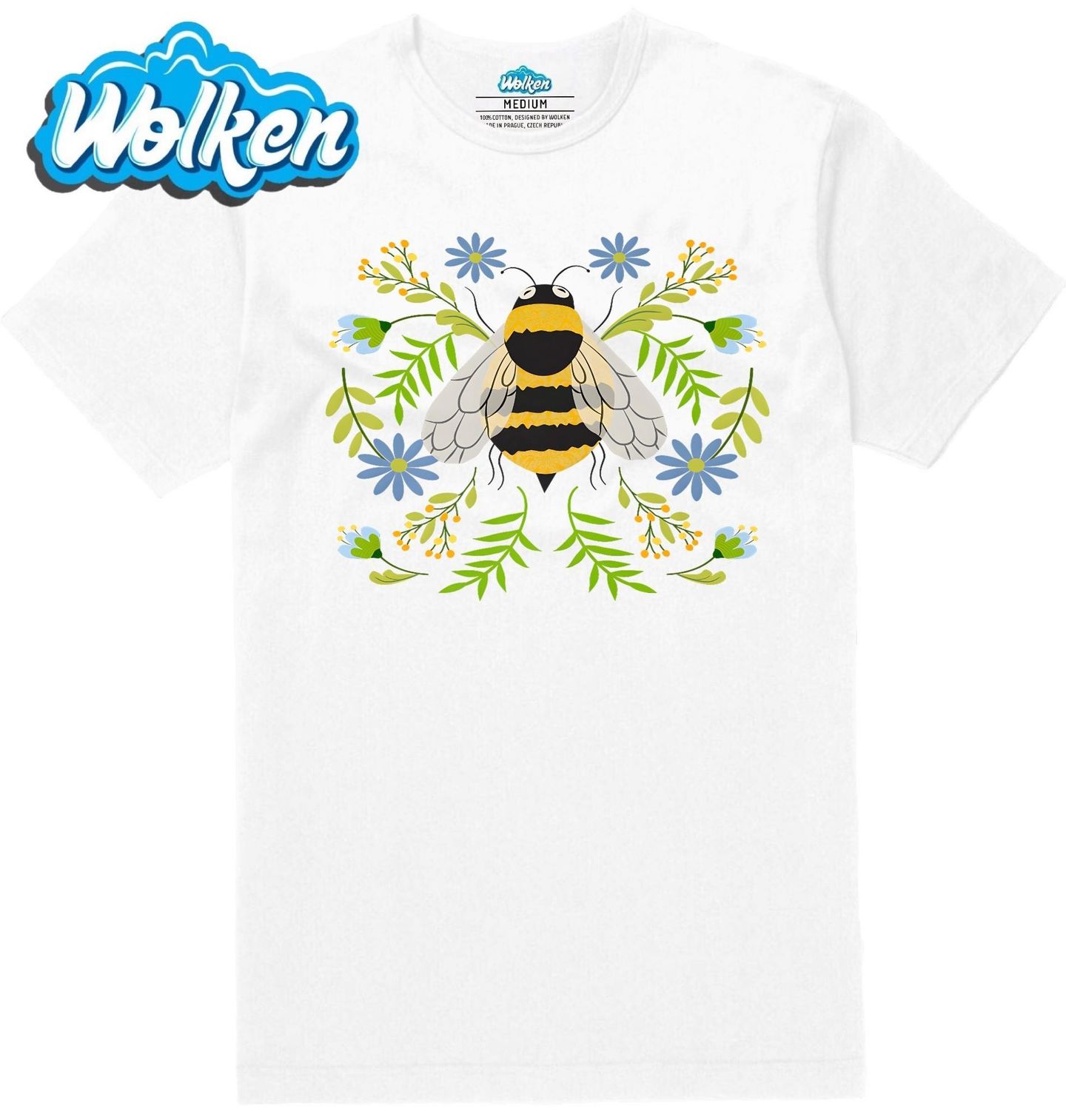 Pánské tričko Včelka na Květinách. Veselý motiv, ve kterém hraje hlavní roli včela obklopená rozkvetlými květinami a zelenými listy. Tento jemný a hravý design oslavuje krásu přírody a důležitost včel v našem ekosystému. Skvěle se hodí pro milovníky přírody, zahradničení i včelařství.