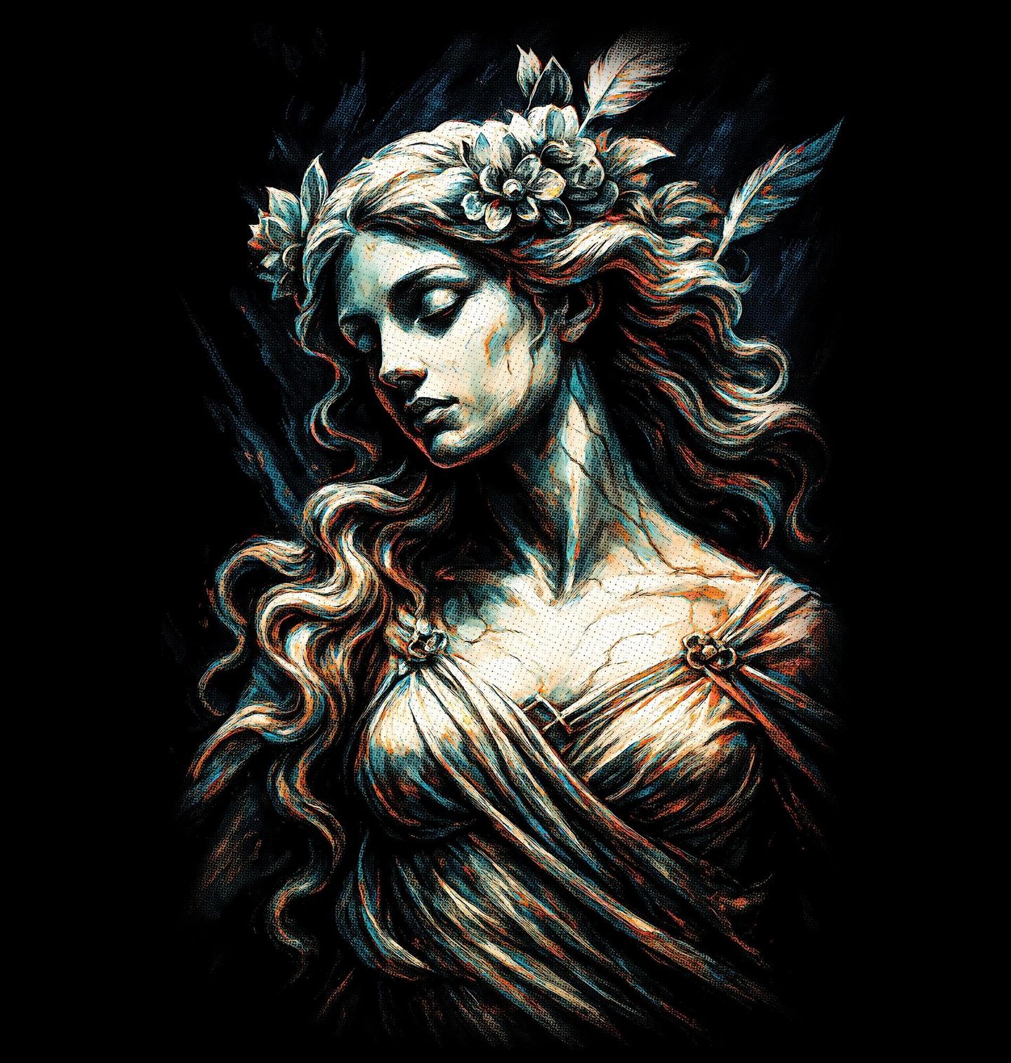 Dámské tričko Věčná Afrodita. Aphrodite je starořecká bohyně lásky, krásy, sexuality a plodnosti, jedna z dvanácti olympských božstev, kterou Římané ztotožnili s Venuší. Podle mýtů se zrodila z mořské pěny, byla manželkou Héfaista, ale měla mnoho milenců, nejznáměji Área. Ovlivňovala bohy i smrtelníky, inspirovala milostné příběhy i osudové vášně.