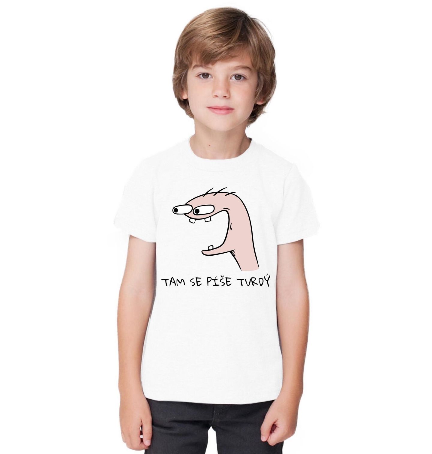 Dětské tričko Věčný Šprt Tam se píše tvrdý. Vtipný motiv s jednoduchou kreslenou postavičkou a legendární hláškou „Tam se píše tvrdý“, která pobaví každého, kdo si pamatuje školní časy. Ideální pro všechny, kdo mají smysl pro humor a nebojí se si udělat srandu sami ze sebe.