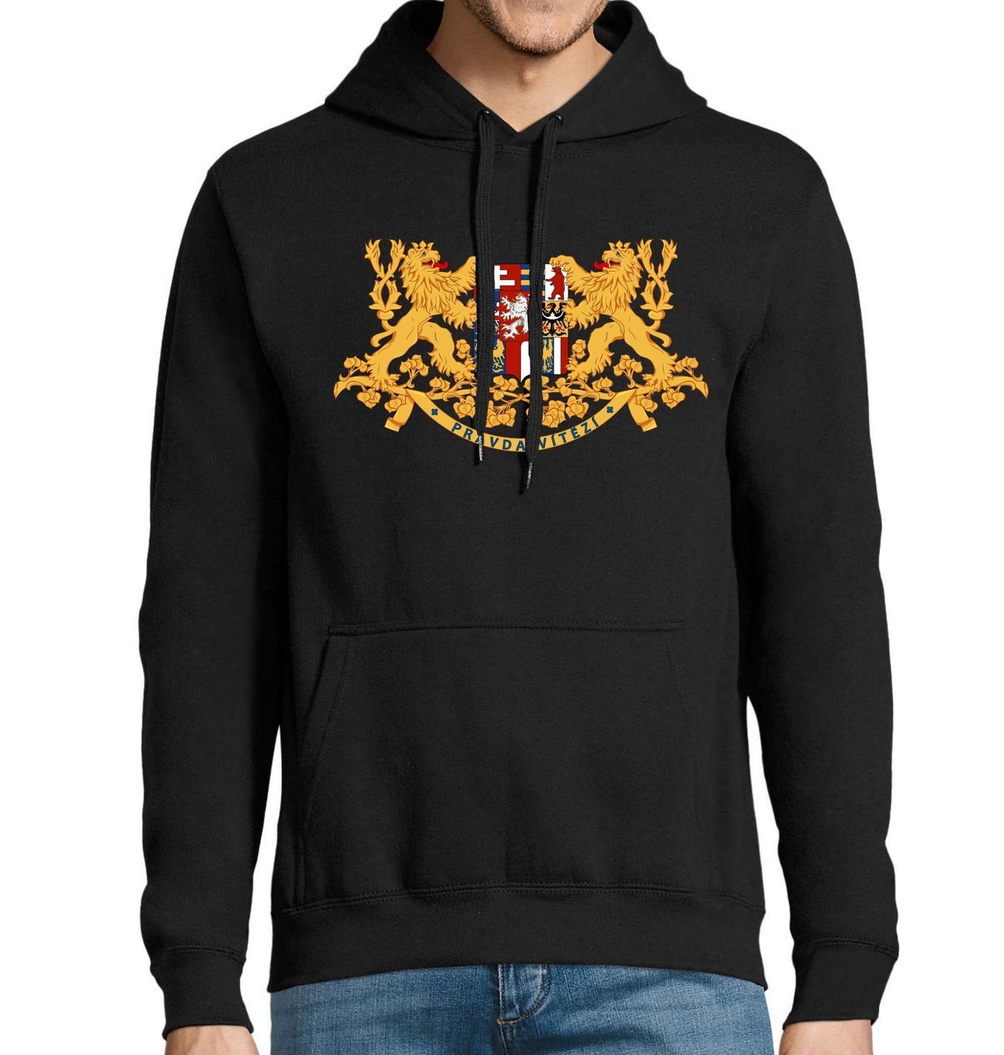 Pánská mikina Veliký znak republiky Československé. Velký státní znak Československa byl oficiálním symbolem první republiky a spojoval znaky Čech, Moravy, Slezska, Slovenska a Podkarpatské Rusi. Dominantní postavou znaku je český lev, který představuje státnost, sílu a historickou kontinuitu zemí, z nichž vzniklo dnešní Česká republika.