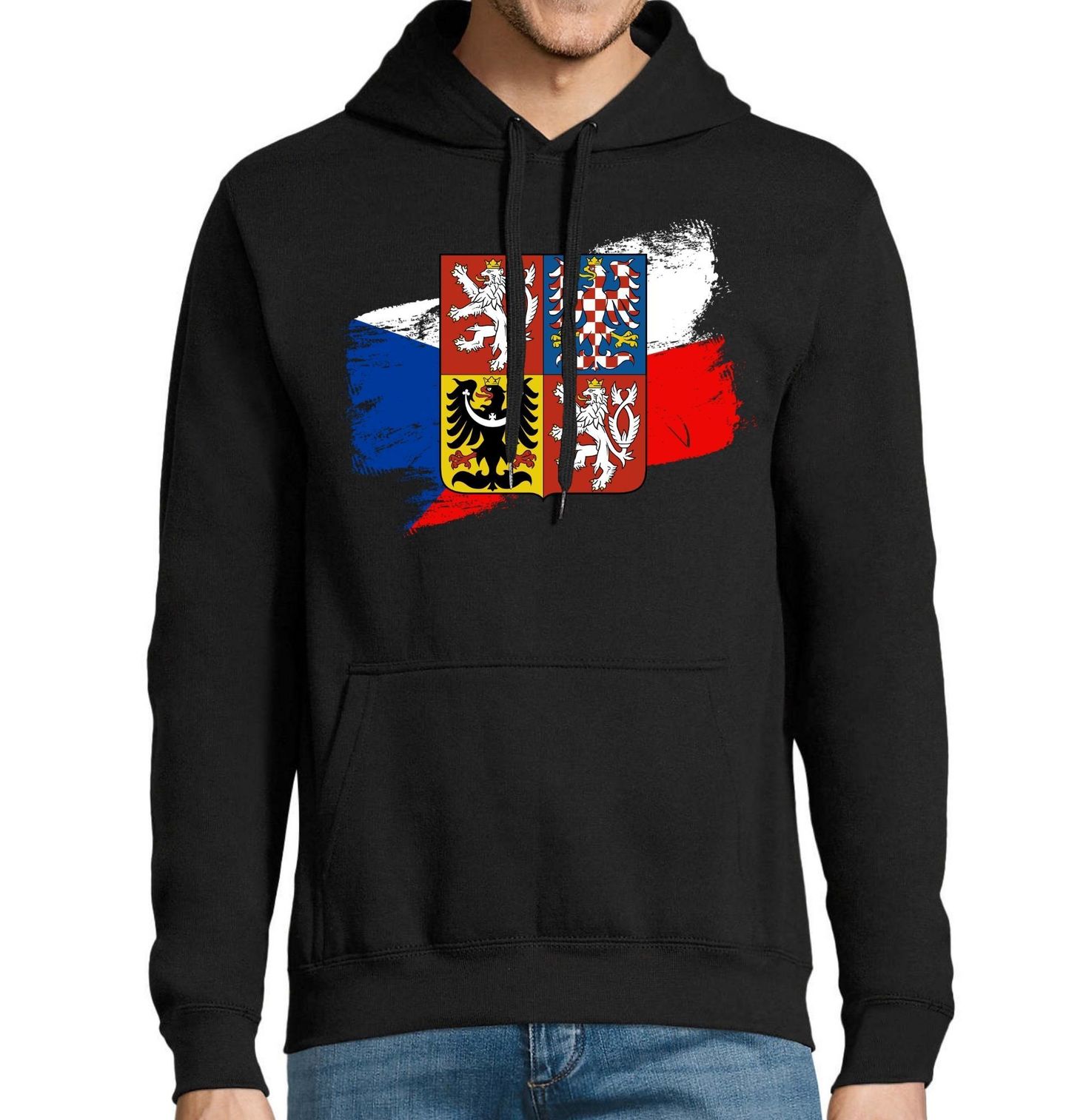 Pánská mikina Velký státní znak a Vlajka České republiky. Motiv zobrazuje velký státní znak České republiky, jeden z hlavních symbolů, který reprezentuje Česko a jeho historické země. Dominantní lev symbolizuje Čechy, zatímco moravská a slezská orlice připomínají Moravu a Slezsko. Tento heraldický znak patří mezi nejvýznamnější státní symboly, které dlouhodobě vyjadřují tradici, sílu a historii naší země.