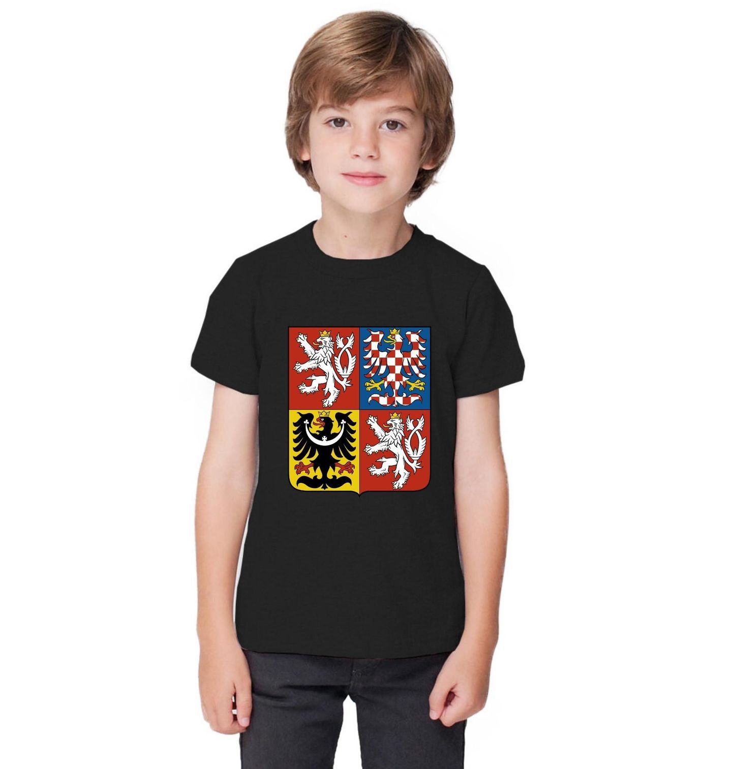 Dětské tričko Velký státní znak České republiky. Motiv zobrazuje Velký státní znak České republiky, který je jedním z nejvýznamnějších symbolů, jež reprezentují Česko a jeho historické země. Na štítu se nachází dvouocasý lev jako symbol Čech a dvě orlice, které zastupují Moravu a Slezsko. Lev vyjadřuje sílu, odvahu a státnost, zatímco orlice symbolizuje tradici, hrdost a historické dědictví jednotlivých částí země.