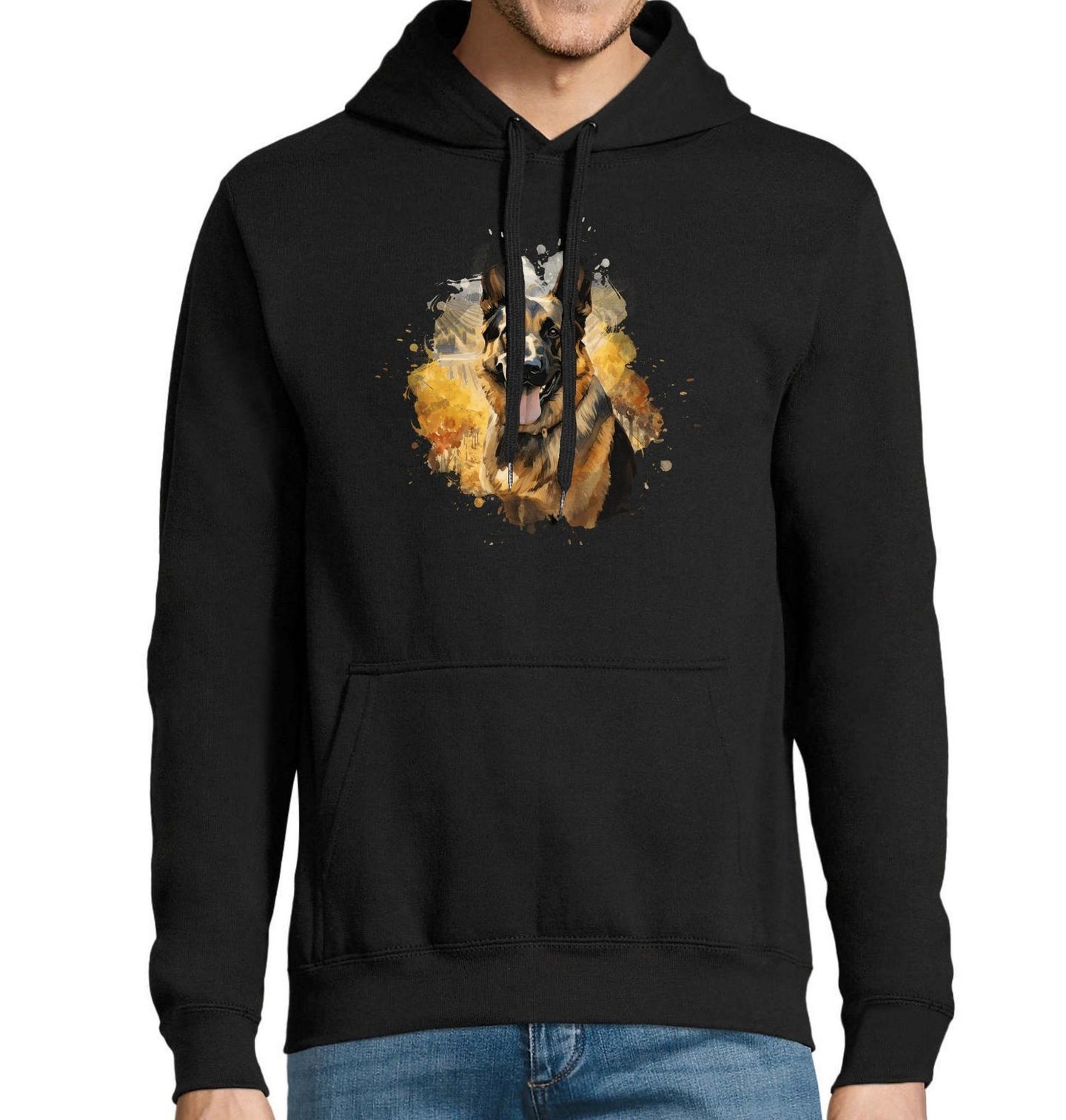 Pánská mikina Věrný Německý ovčák. Zachyťte sílu a oddanost, kterou v sobě nese pes plemene německý ovčák, na tomto stylovém tričku s jemným podzimním motivem. Realistický akvarelový design zachycuje krásu zlatavé krajiny a výrazné rysy tohoto inteligentního plemene. Tričko je ideální volbou pro každého pejskaře, který miluje svého psa, přírodu a originální umělecké zpracování.