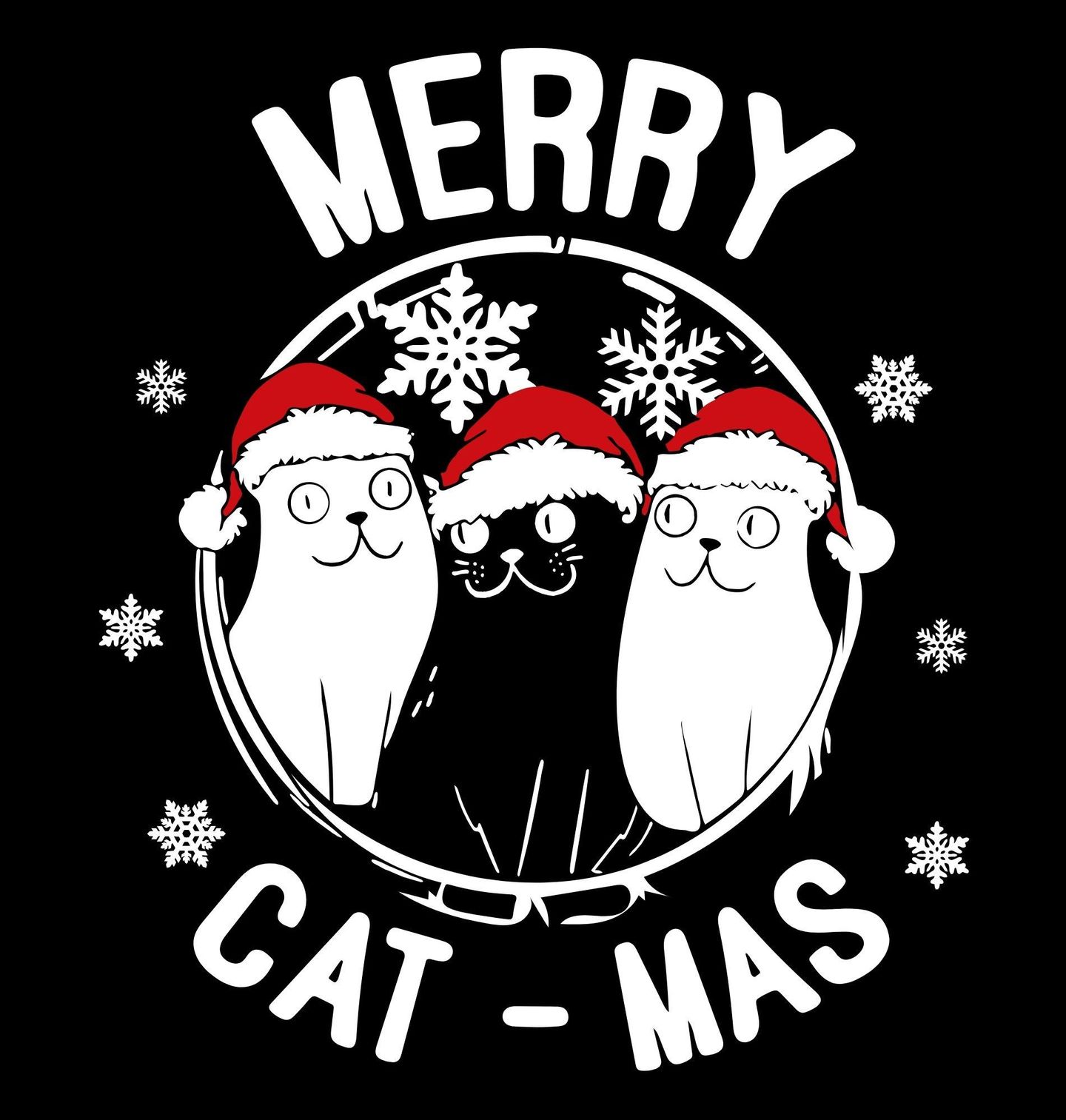 Pánské tričko Veselé Kočičí Vánoce Merry Cat-mas. Roztomilý motiv „Merry Cat-mas“ je ideální pro všechny milovníky koček a vánoční pohody. Tři kočky v Santovských čepicích, doplněné o vločky, vám zaručeně vykouzlí úsměv na tváři. Tento originální design propojuje Vánoce s láskou a kočkami.